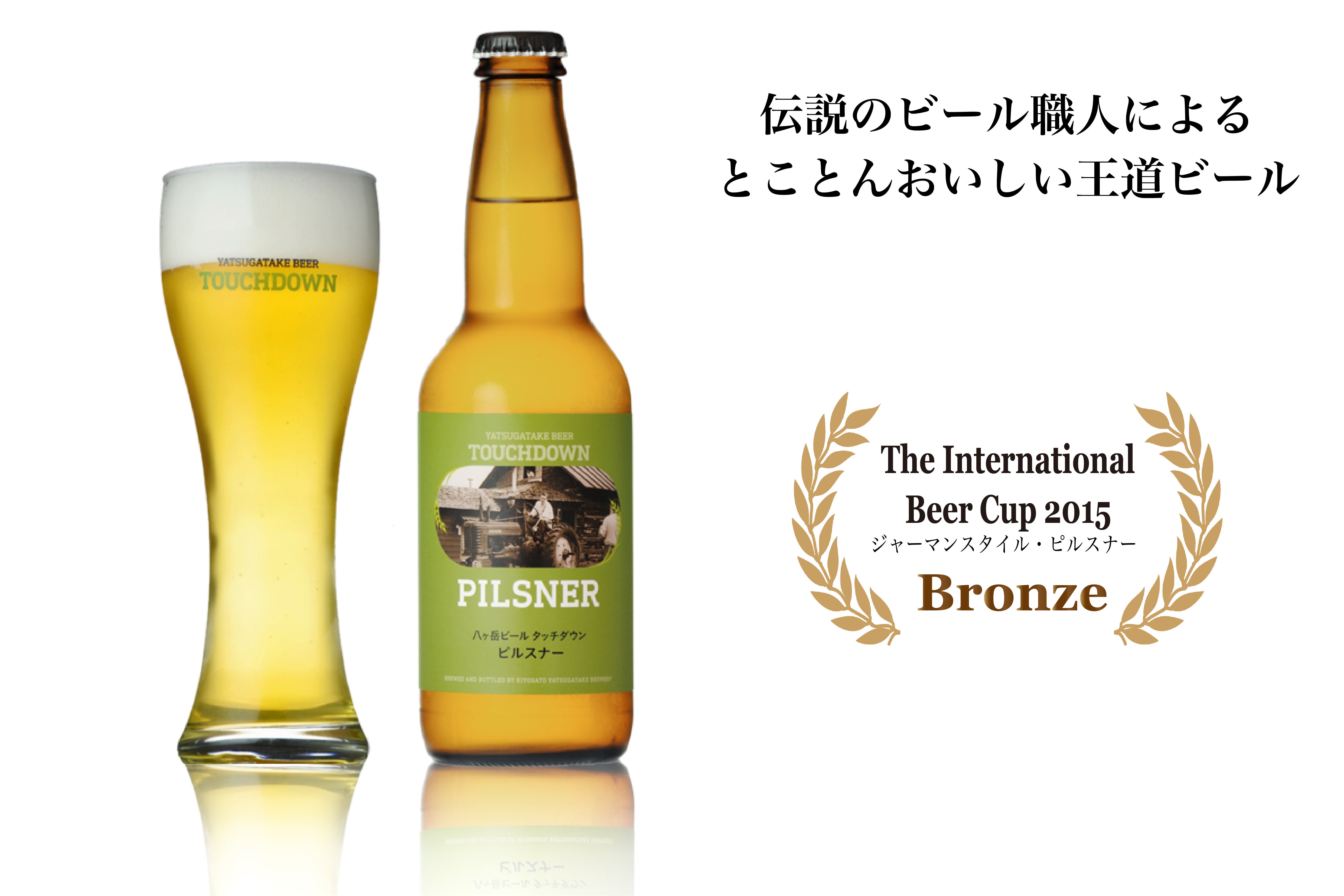 1997年、かつてキリンビールで「一番搾り」や「ハートランド」の醸造開発責任者を歴任した日本最高峰のビール職人 山田一巳(やまだ・かずみ)を醸造長に迎えスタートしたビールブランド「八ヶ岳ビール タッチダウン」。「そこそこおいしいね」と思うビールでなく、10人のうち3人が「感動した!」と言ってくれるビールを目指し生まれました。現在八ヶ岳ブルワリーは、若き醸造長の松岡風人がその技術を引き継ぎ、発展させています。2017年までに3回世界一を獲得。そのほかにも数々の賞を獲得しています。