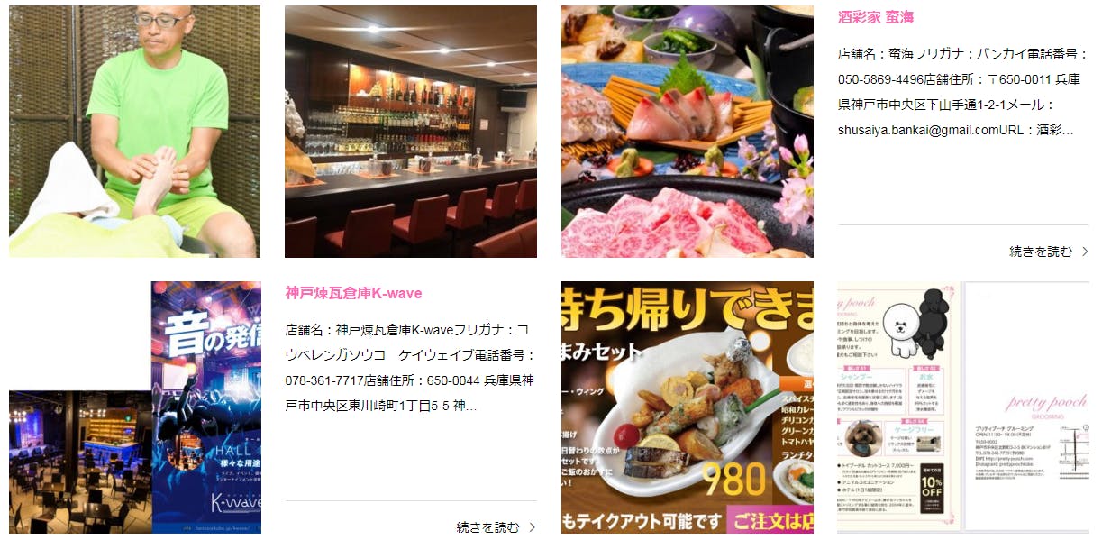 cafeこさじ・COPACABANA・神戸スポーツ整体・牡蠣料理地鶏焼鳥 兼続・コネクト・