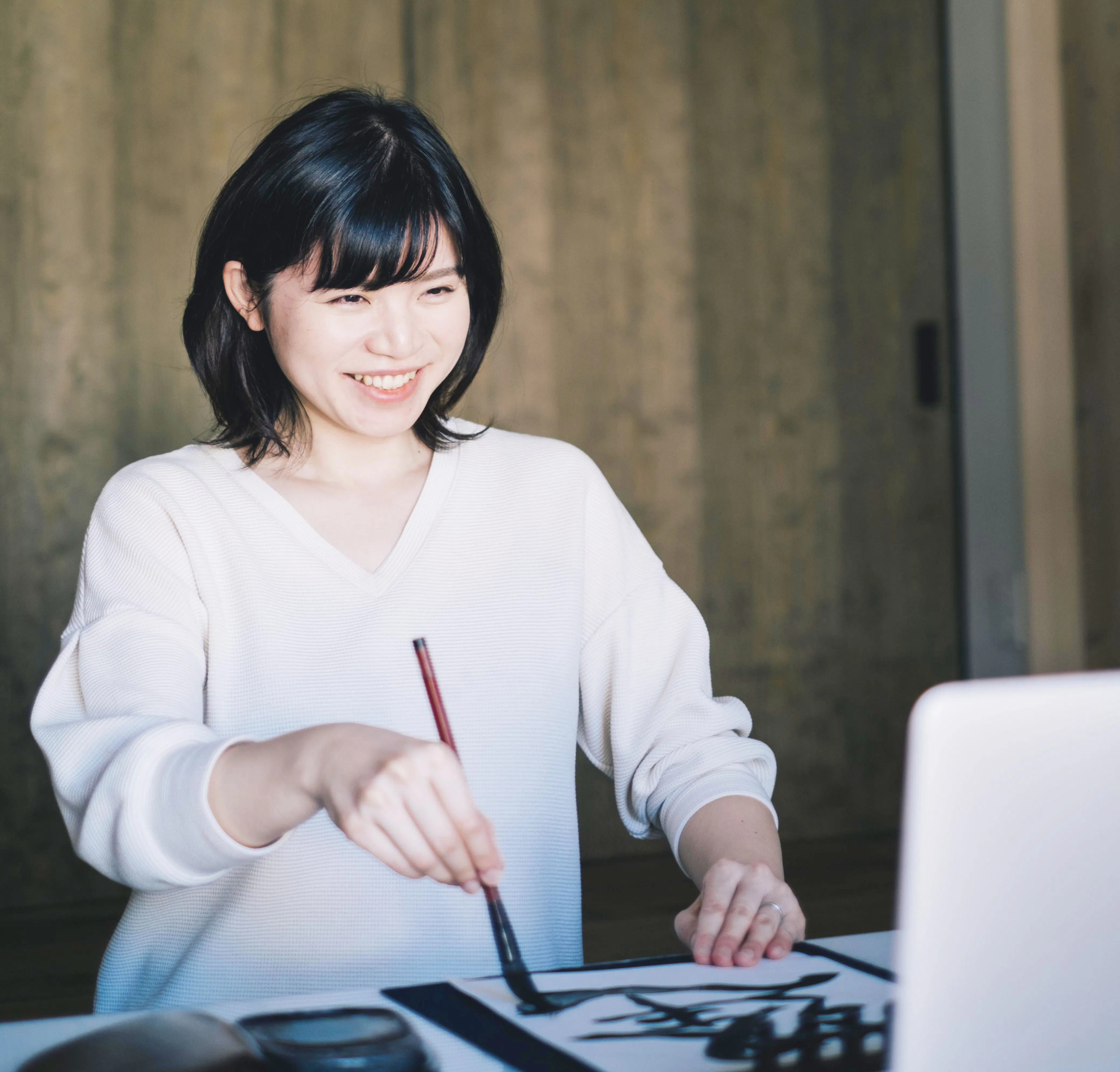 デジタル書道科とも組み合わせ教材・課題・授業という学習の3本柱をオンライン化することで、楽しみながら本格的な書道も自然と身に付く仕組みも私たちは考えます。