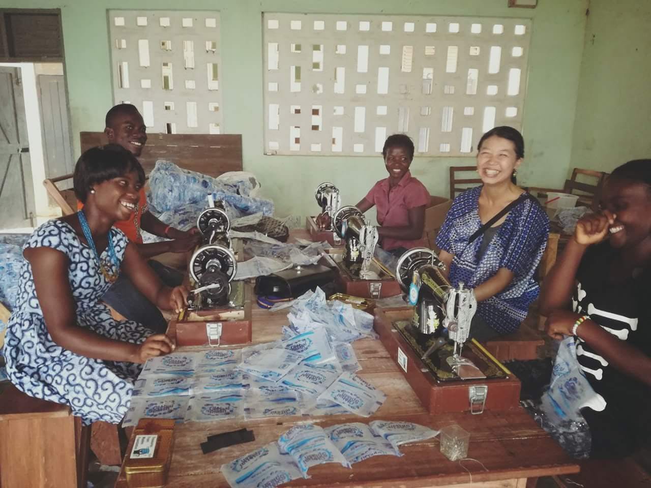 具体的には飲料水「ピュアウォーター」の袋を再利用した、バッグやポーチを村の若者たちと一緒に作り販売をしていました。