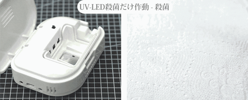 A)乾燥機能は同封されているチャージケーブルがつながった状態でのみ作動し、つながってない状態の場合、UV-C LED殺菌機能のみ作動されます。ご注意してください。