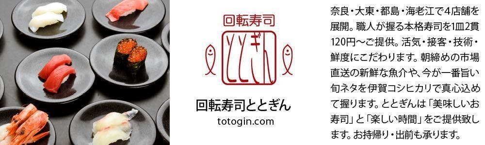「回転寿司ととぎん」:近鉄奈良駅前店/大東店/都島店/イオンスタイル海老江店