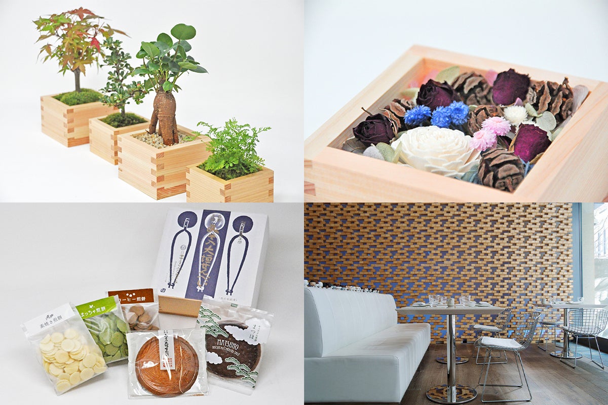 2018年11月には、大垣駅前商店街で若い方にも気軽に枡やヒノキを楽しんでもらうため枡でスイーツやコーヒーを提供する「masu cafe」を開業いたしました。壁や机にも枡を使用して内装材としても提案しています。