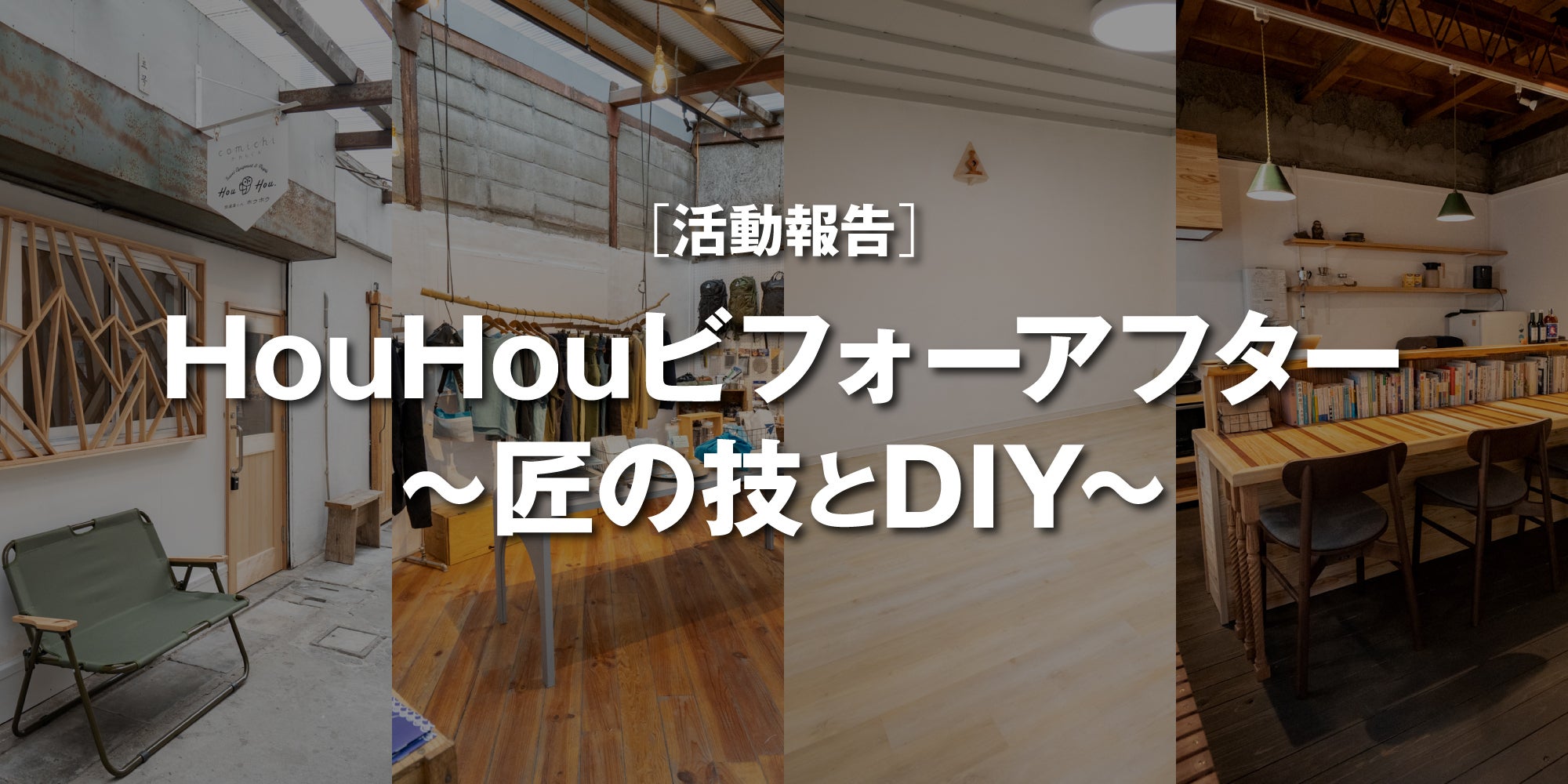 2020/05/26 07:00HouHouのみさとです。4月18日から始まった、大工さんによる工事。追って26日からとりかかった、私たちのDIY。ようやく、ようやく、概ね終わりましたー!!と、いうことでみなさんに早く見て欲しくて、なんとか体裁を繕って撮影しましたよ。それでは、いきますよーーーまずは、いきなりずーーーっと勿体ぶって隠していた、窓枠をおひろめします!▼Before▼Before:外観▼After▼After:外観ばーん!すげーかっこいーでしょ大工さんが当店のために頭を捻って作ってくれました。山。そして降りそそぐ太陽の光。をイメージしているそうです。お店の中が見えるように、すりガラスから透明ガラスへ。窓枠は、防犯を意図してつけることにしたのですが、お店の顔になる存在感!つけてよかったー!さすが、匠!なんということでしょう!!(←使いかたが雑)ドアは既存の黒いものから、取り替えてもらいました。もともとあった引き戸のテイストに合わせてやさしい木目のドアへ大変身!ガラスにはカッティングシートでロゴを貼りました。廊下にはベンチを出しているので、ゆっくりおくつろぎいただけますよ。comichiかわらぐちの「こみち」を楽しんでください。さぁ、中に入ってみましょう。▼Before▼Before:カウンター部屋▼After▼After:カウンター部屋なんということでしょう!左に寄せられていたカウンターは、右の壁へと寄せられ、入り口からの出入りをスムーズにすることができました。床は水による腐食があったため、張り替え(大工さん)、オイルステインをぬりました。(DIY)そして、このお店の心臓部分。カウンターテーブルの美しさをご覧ください。木のもつ個性やあたたかみがギュッとつまった、広々としたつくり。カウンターには備え付けの本が並べられ、みなさんの知性や好奇心・探究心をくすぐります。来るたびに違う席について、目の前にくる本との出会いを楽しむのもいいですね。この本棚は、私たちのこだわりのポイントでした。▼Before▼BEFORE:カウンターの部屋の別アングル▼After▼After:カウンター部屋の別アングルカウンター下にはコンセントが備え付けられ、パソコンを使った作業も可能です。(周りの方の迷惑にならないよう、エンターキーはやさしく押してくださいね)このカウンターは「山小屋っぽさ」を意識していると、匠はおっしゃっていました。山小屋で経験する、知らない人たち同士が自然と語り合ってしまうような空気感だったり、はたまた静かに明日の準備をする人に配慮するやさしさだったり、そんな心地よさが約束されているような仕上がりです。壁の棚は、これからすこしずつ作り上げていきますので、おたのしみにー名残惜しいですが、階段をのぼって、2階「ととのいの間」へ。▼Before▼Before:2F▼After▼After:2F・床はDIYによって、足あたりのやさしいフローリングに・窓にはやさしい光を通すカーテン・ヨガレッスンやマッサージの空間として静けさを保つため、引き戸をつけました。(しかし!1階の天井板が無いため、1階の話し声は丸聞こえですので時間によってはヒソヒソ声をお願いすることがあります。)After:2F奥から見たところ・階段への採光を考えて、引き戸にはガラス窓をつけてもらいました。素人には考えつかない細かな気遣いは、さすが匠!と、感心するばかり。After:ババッチ自作のシューズラック・ととのいの間は、土足禁止。入口にて靴を脱いでいただきます。靴を脱ぐスペースを確保するための壁掛け靴置き場は、DIY部長ババッチ作。普段はヨガなどに使いますが、利用がないときはここで”ごろりんちょ”していただくこともできるかも。瞑想さん・そして、なんということでしょう!殺風景だった壁面には、このお部屋のシンボル「瞑想さん」が鎮座しています。瞑想さんの座っている場所は、匠が作ってくれましたよ。・1階と2階をつなぐ階段は、赤いビニールを剥がし、壁のおえかきをペンキで消しました。すっきり!さてさてさてさて。階段を降りて、1階にもどりましょう。お待たせしました、道具部屋のお披露目です。▼Before▼Before:道具部屋▼After▼After:道具部屋日除けのために布がかけられていた天井部分は、屋根を張り替えることによって、採光と日除けのどちらも同時に可能になりました。あかるくなったでしょ!斜めに貼られた床板はそのまま残すことに。塗装を研磨し、オイルステインを塗り直し。両壁には有孔ボードを貼りつけてもらいました。中央部分の陳列台は、前の利用者さまが残された物をペンキで塗り替えて再利用しています。今後は隅っこにフィッティングルームを作る予定です。どの部屋も細かいところはまだまだなのですが、おいおい手を入れていきますので、みなさんその進化をチェックしに来てくださいね。さてようやくお店の準備も終わりが見えてきて、無事にオープンできる状態になりました。グランドオープンは6月1日を予定しています。オープンに先駆けて、クラウドファンディングに支援いただいた皆様限定で、事前