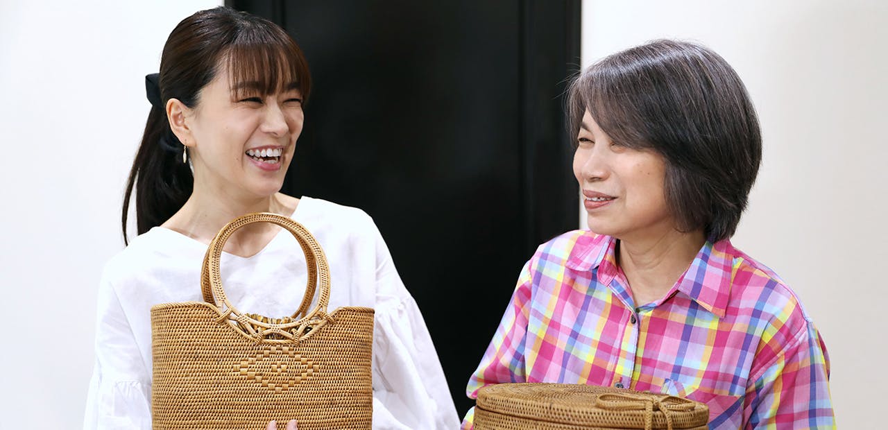 また、足繁く現地に飛び、出来上がった製品を自分たちの目でひとつひとつ検品し、現地の職人さんたちと細かく議論し、説明し、日本のお客様の暮らしに合った良質なアタかごをお届けしています。