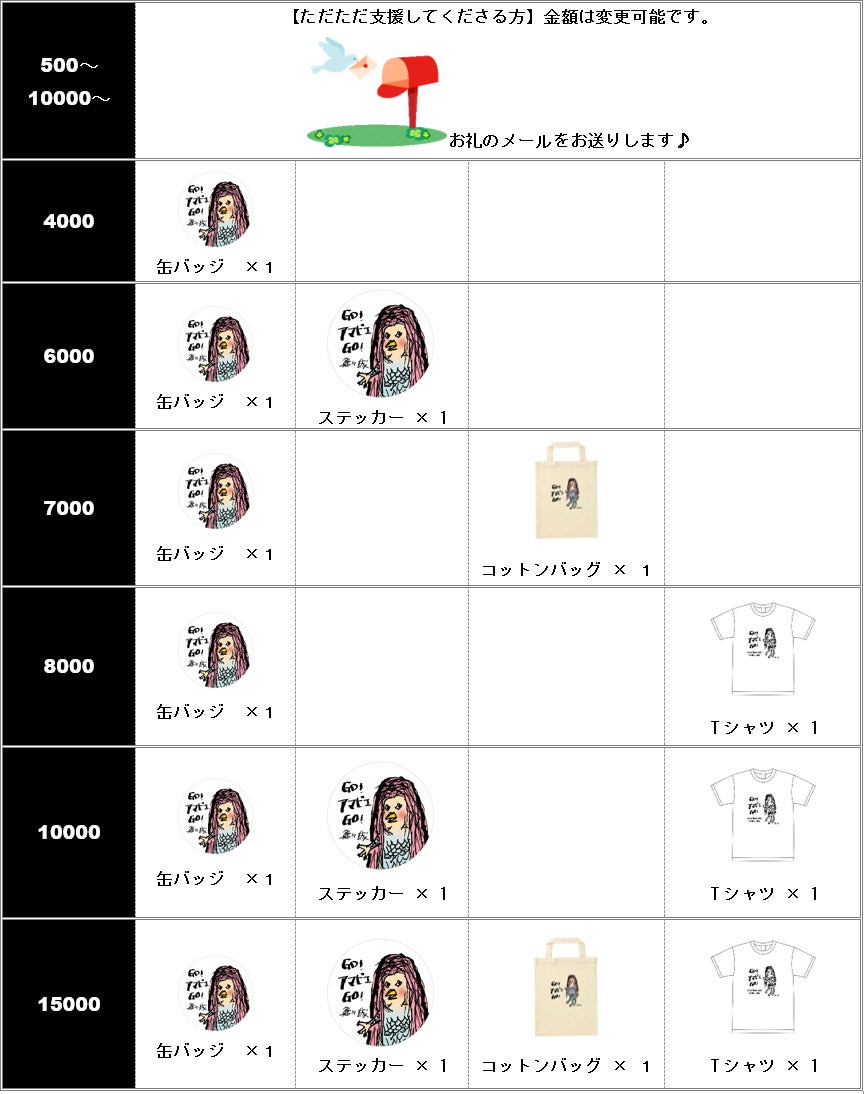 鮎川誠さん 「GO!アマビエGO!」のイラストを使用したグッズをリターン品としてご用意しています。