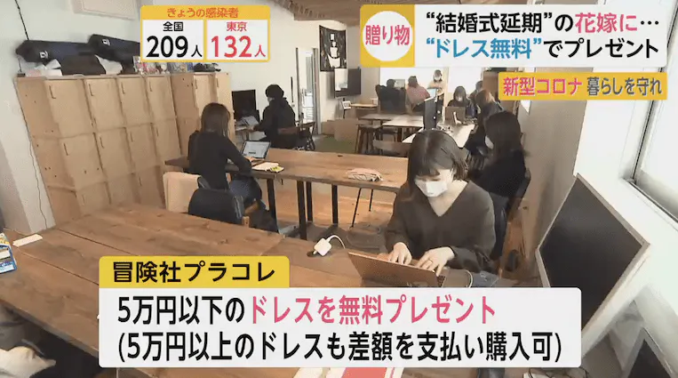 新型コロナの影響で婚礼をキャンセルされた方々を対象に、DressyOnlineで販売するウェディングドレスを無料でお届けいたします。今回の資金はウェディングドレス購入費用、運搬費用に当てさせていただきます。