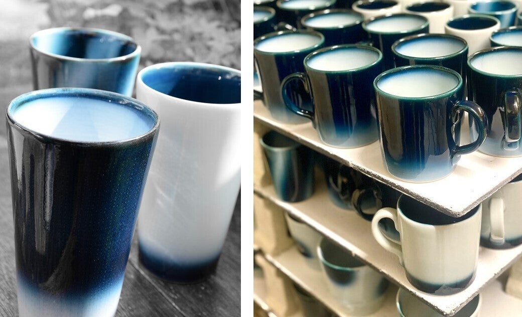 ひときわ目を引く、青のグラデーション。独自の調合で作られた、やや緑がかったこの青色は「ヨシュアブルー」と呼ばれ、一つ一つの器にエアーブラシで吹き付けられています。この独特のブルーに惹かれてシリーズで揃えられる方も多く、ヨシュア工房の店舗にはこちらの器を目当てに遠方からお越しになる方もいらっしゃいます。今回、「愛媛の良いもので父の日の贈り物選びにお役に立ちたい」想いにご賛同いただき、ビールに最適な磁器タンブラーをセレクトしていただきました。