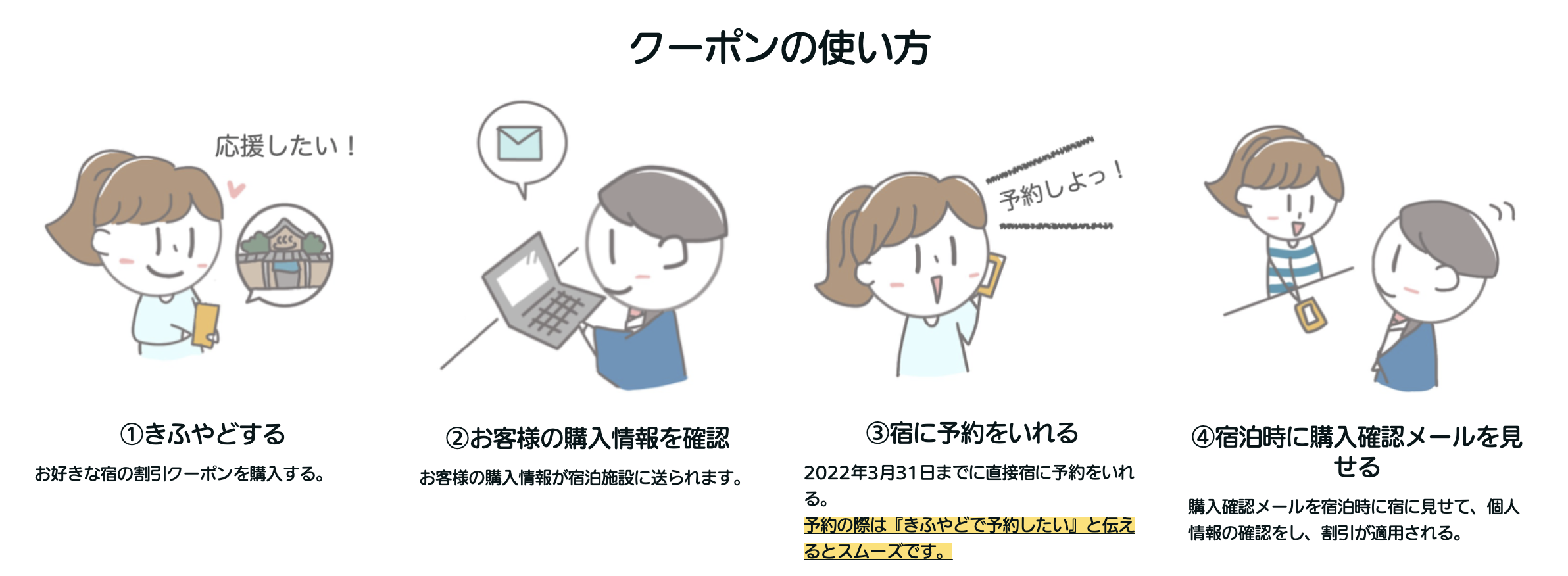 未来に泊まる宿や支援したい宿のクーポンを購入することで、