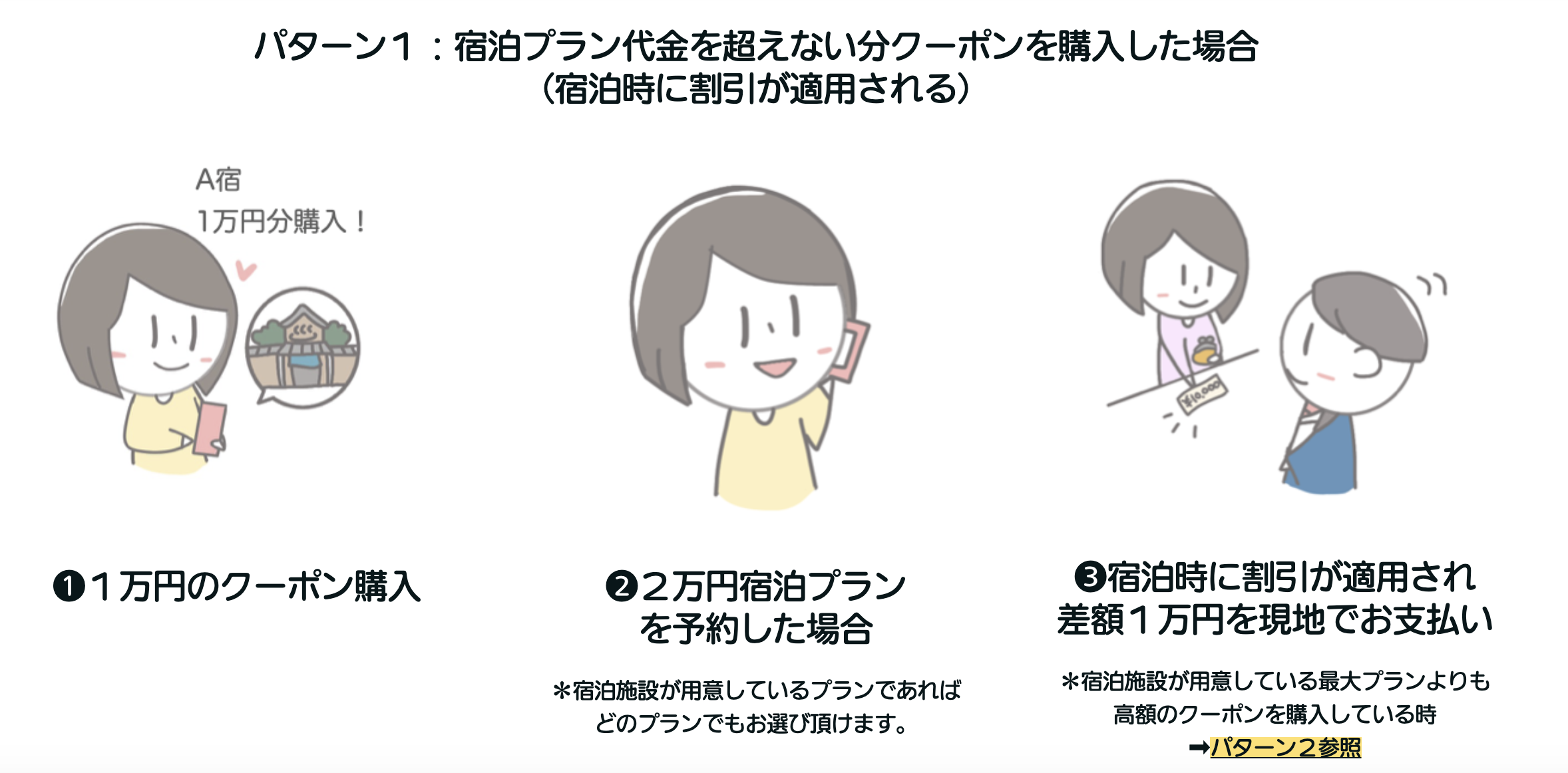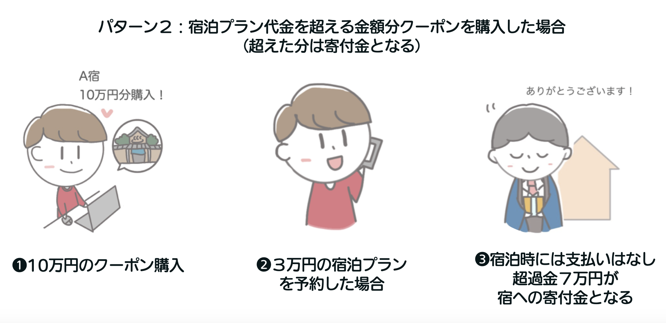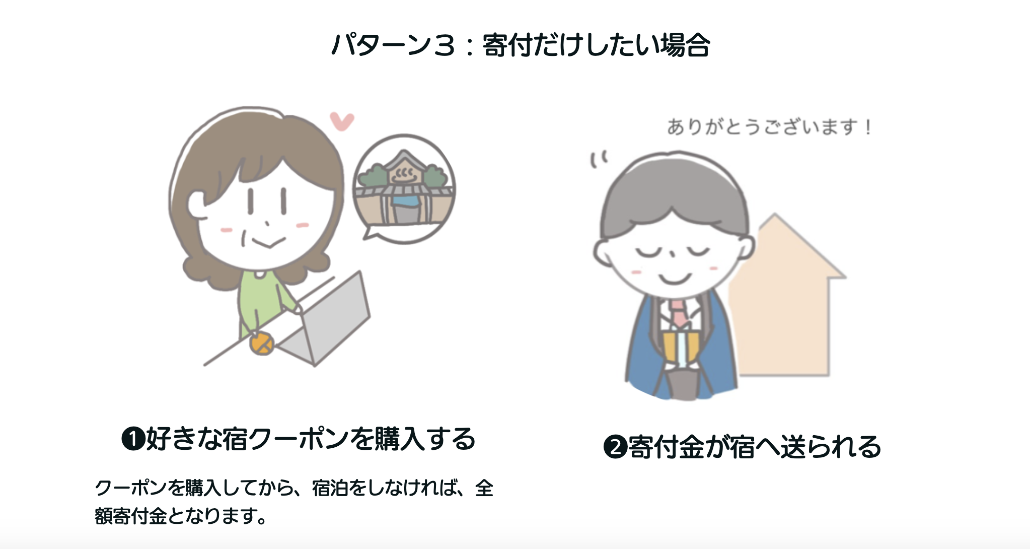 クーポンの購入の仕方によって以下のような様々な支援方法があります。(パターン1〜3参照)