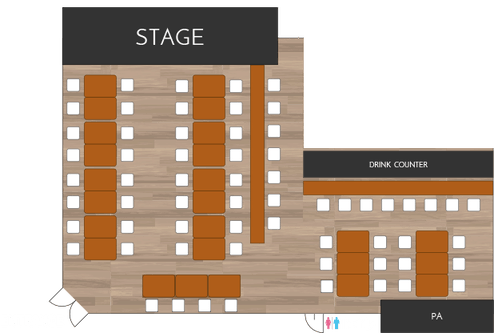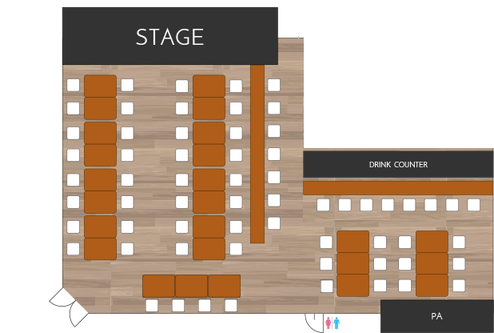 湘南で随一を誇る音響・照明設備。さらに着席70名の広々とした店内。