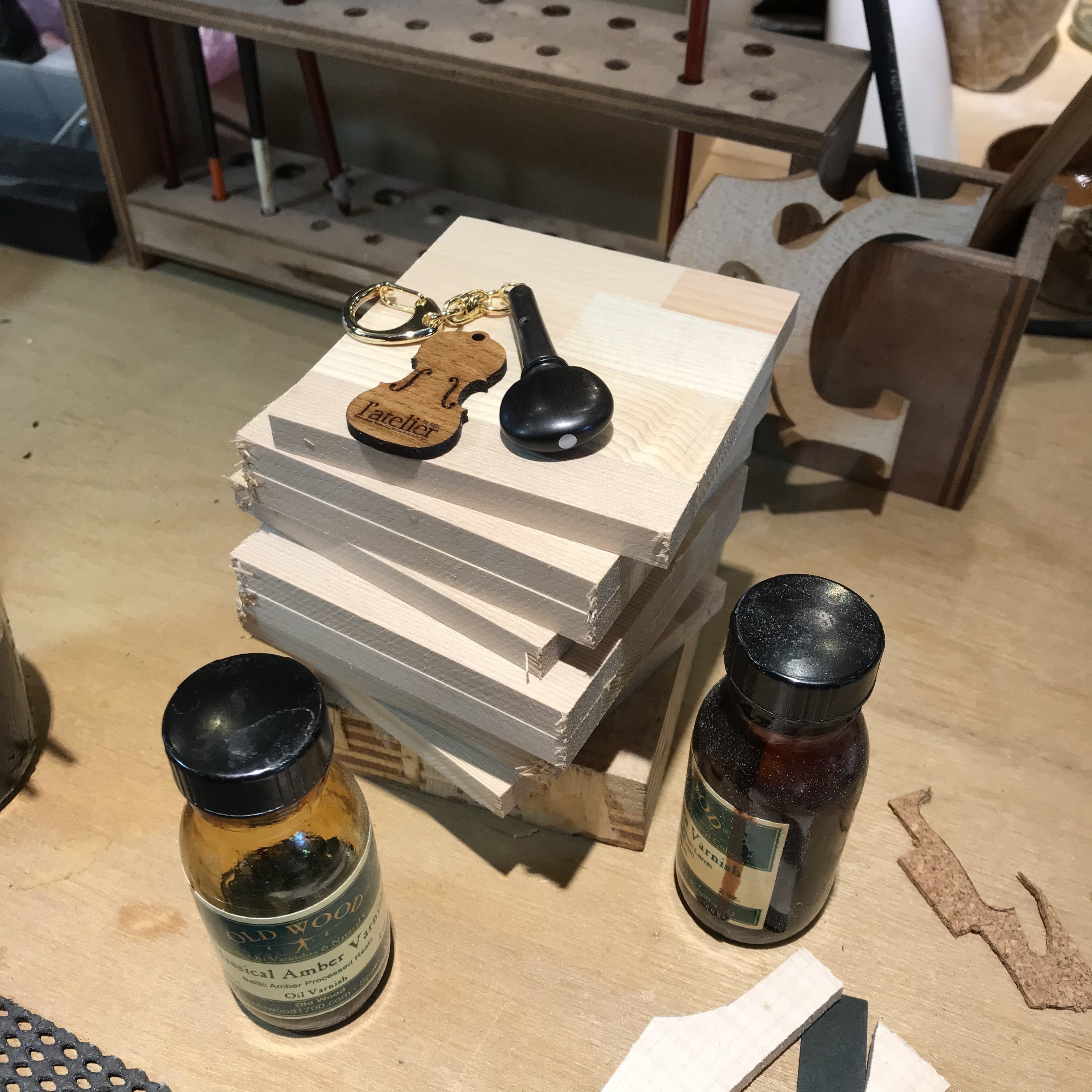 ・弦楽器工房の職人が作るオリジナルキーホルダーや、コースター