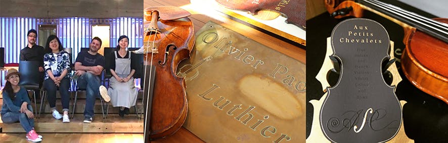 ●弦楽器店・工房としてのヒストリーは、オリヴィエ パオリがパリで工房をスタートした1997年に遡ります。豊富な経験を元に、楽器の刻んできた歴史、特徴、個性、そして演奏者の特徴などを見極めながら、一つ一つ丁寧に、クオリティを大事に作業をしています。修理の様子などを見ることができるオープンスタイルで演奏家の方も工房でどんな修理がされているのかを間近で見たり、お客様とコミュニケーションをとりながら修理を進めます。楽器は生きていると言われますが元気で豊かな音が蘇った時の嬉しさは感慨深く、命が吹き込まれたような喜びがあります。販売している楽器もオールドからモダンまで、ヨーロッパを中心に様々な弦楽器のお取扱いがあり、お客さまそれぞれの好みや演奏スタイルご予算をお伺いしながら最適な楽器、パートナー選びをご提案させていただいております。