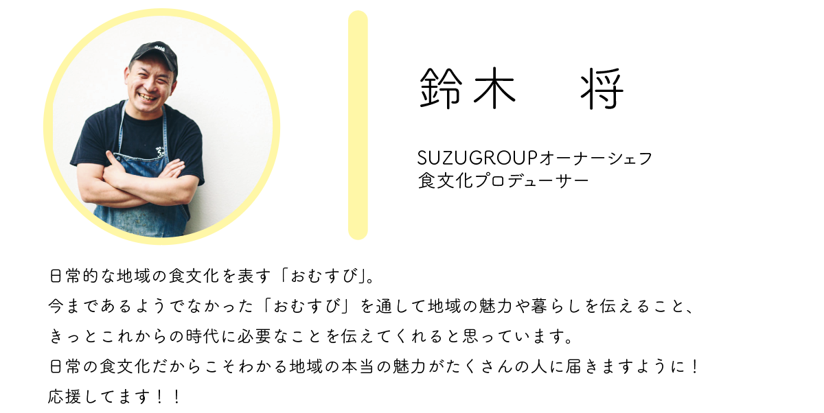 地域の伝統食に向き合ってきた料理人さんに地域の新しいおむすびを考案してもらったり