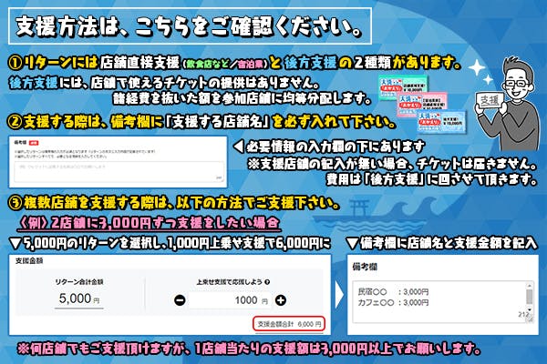 ※1店舗辺りの支援額は、最低3,000円からでお願い致します。