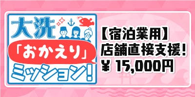 ※大洗シーサイドホテルは宿泊枠の支援は終了致しますが、引き続き飲食店枠の「大洗シーサイドホテル(レストラン・ウィスタリア)」の支援は継続致します。宜しければそちらもご活用ください。