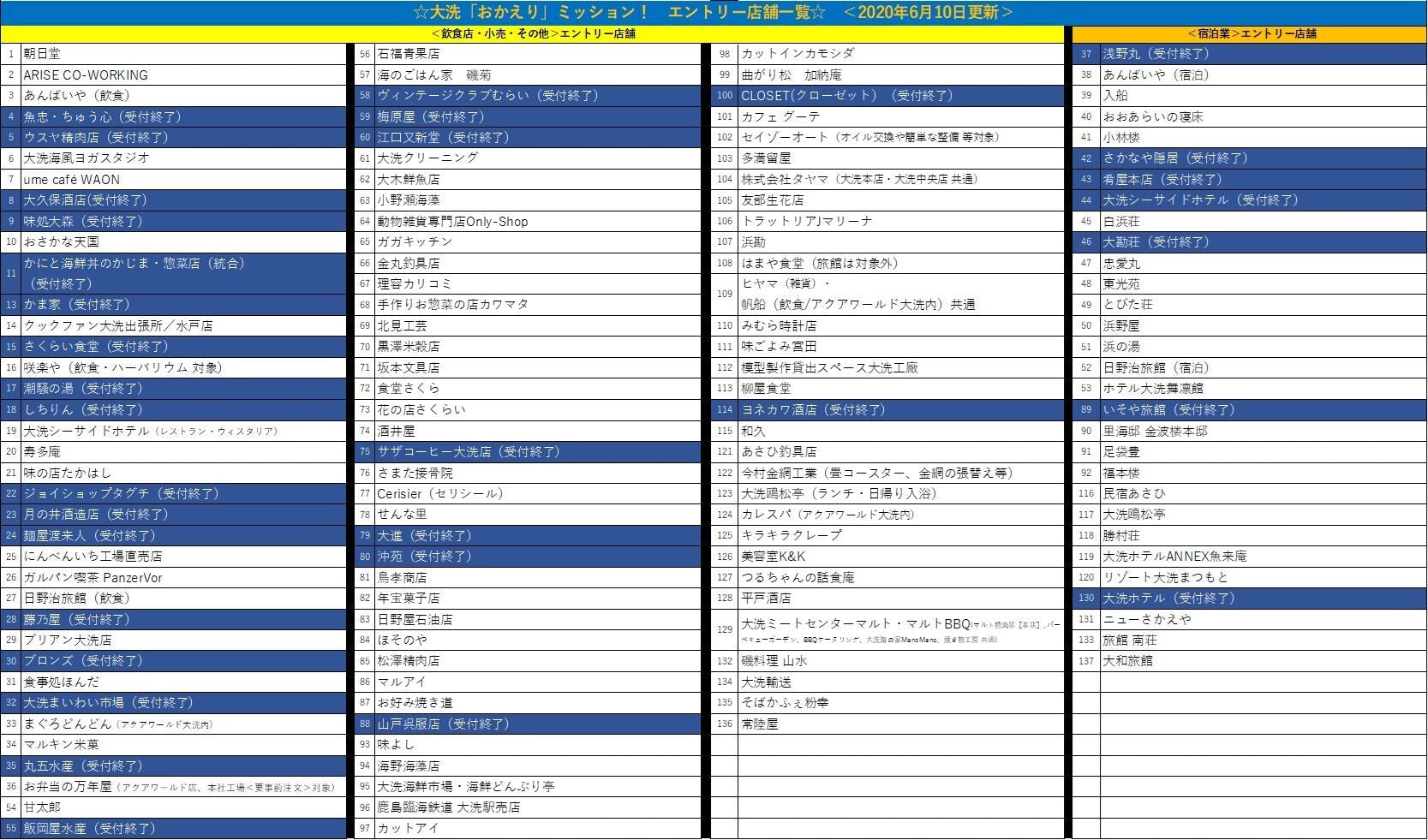 ◆受付終了店舗◆[6月29日更新]