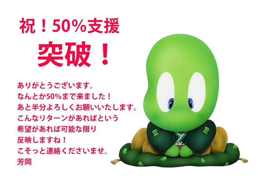 2020/05/20 11:00ご支援ありがとうございます。なんとか半分まで達成出来ました(^_-)-☆あと24日でゴールを目指します。引き続きご支援よろしくお願いいたします。新しくリターンも追加できますので何かこういうリターンがあればな~という方遠慮なくメールで連絡くださいね(^^♪そのご希望に添えるように極力頑張りますので・・・遠慮なく教えてくださいませ(*^^)v例:好きな原画&すきな版画&画集&絵本&ジグソーパズルを1リターンで!とか もっと見る