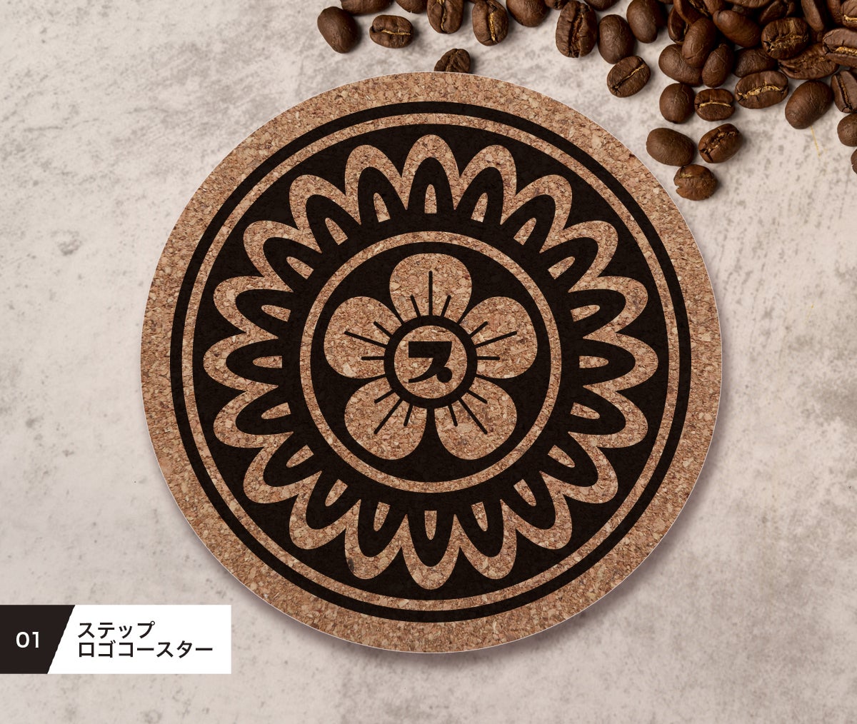 コースター ステップのロゴのコルクコースター