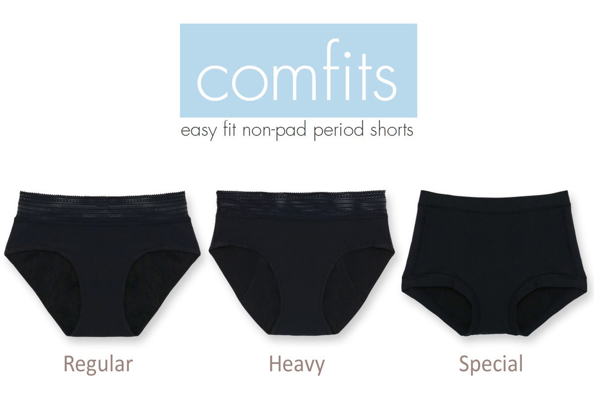 【comfit - easy fit non-pad period shorts - (コンフィット イージーフィットノンパッドピリオドショーツ】は生理の時、経血を吸収する機能がついたナプキン一体型のショーツです。