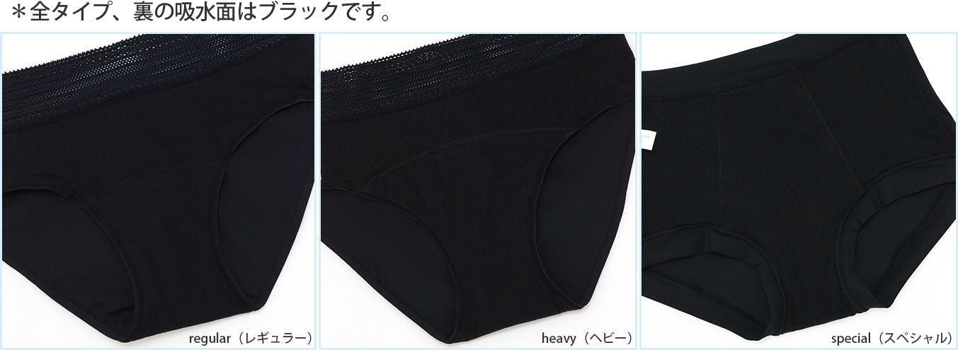 給水量が異なるRegular(レギュラー)、Heavy(ヘビー)と給水量の多さと履き心地にこだわったSpecial(スペシャル)の3タイプのご用意があり、XS~3Lサイズまでの6サイズ展開。