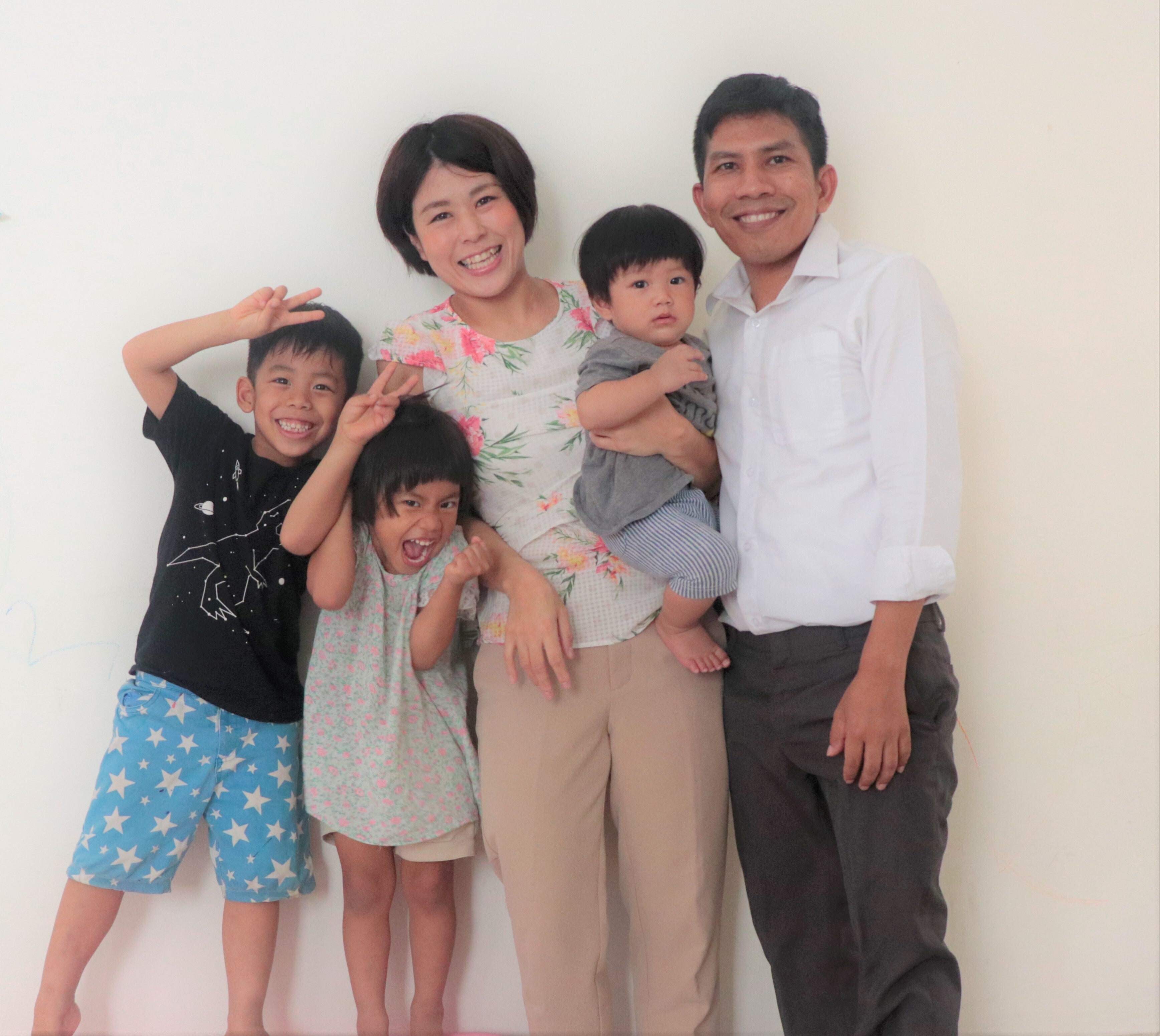 現在、カンボジア人の夫とカンボジアに住んでおり、二男一女(6・4・1歳)の三児の母です。