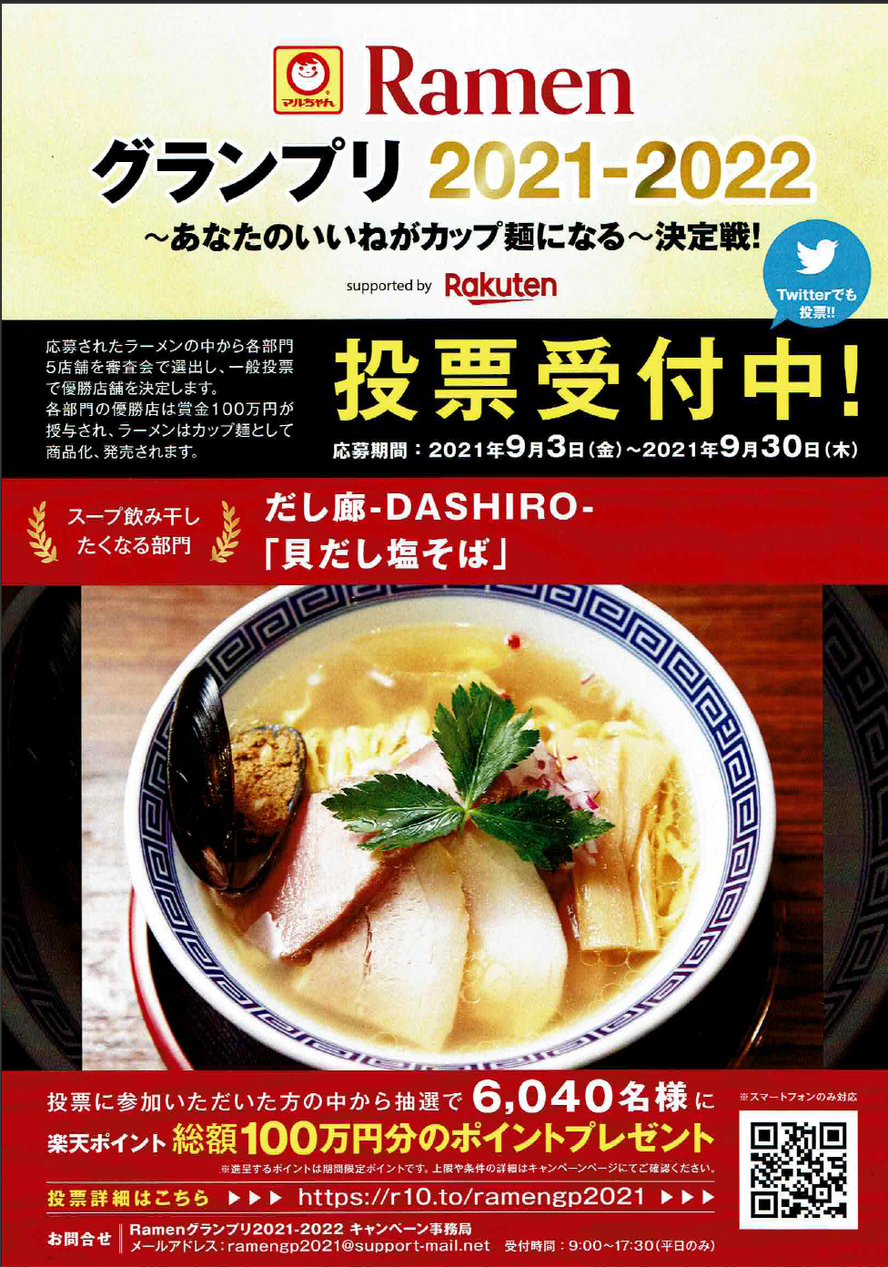 2021/09/04 12:15支援者の皆さまへコロナウイルスの感染拡大は止まることなく、まだまだ油断できない日々が続いておりますが皆様はいかがお過ごしでしょうか?だし廊は皆様からいただいたご支援のおかげで何とか立っております。改めてありがとうございました。店舗での食事が制限される中、「だし廊-HOME-」のようなだし廊の味をおうちで召し上がっていただけるような新しい取り組みなどを行ってきました。そして、様々な方面でお客様にだし廊の味を楽しんでもらえるように試行錯誤し、色々な活動をしております。そしてこの度、なんと!!!!!【マルちゃんRamenグランプリ】「スープ飲み干したくなる部門」にて全国の最終5店舗に選ばれました! !一般投票にて優勝するとカップ麺化!! 宮城で育てていただいた「だし廊」の味を全国の皆様にお届けしたい。Twitter or 楽天IDをお持ちの方はぜひお力添えをお願い致します。投票はコチラから1日1投票できます!投票いただいた方にも嬉しい特典があるので、ぜひ詳細をご確認ください!!→→→→→Ramenグランプリ詳細←←←←←これからもだし廊を宜しくお願い致します。 もっと見る【重要】リターンのお受け取りについて
