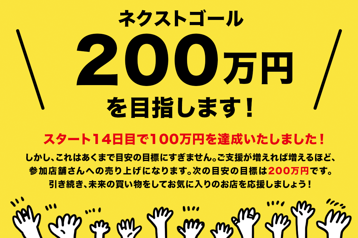2020/06/01 14:054月28日にスタートしたBUY LOCAL tsuyamaですが、昨日5月31日をもって終了いたしました!最終的に157名もの方々にご支援いただき、総額1,614,500円が集まりました。ご支援いただいたみなさま、応援いただいたみなさま、拡散のご協力をいただいた掲載店舗さま、みなさまのおかげで本プロジェクトは成功することができました。本当にありがとうございました!現在運営では、支援者の整理やチケットの準備をはじめています。ご購入いただいた金券チケットは、7月10日より支援した店舗にてご利用いただけます◎楽しみにお待ち下さい!BUY LOCAL tsuyama 事務局 もっと見る