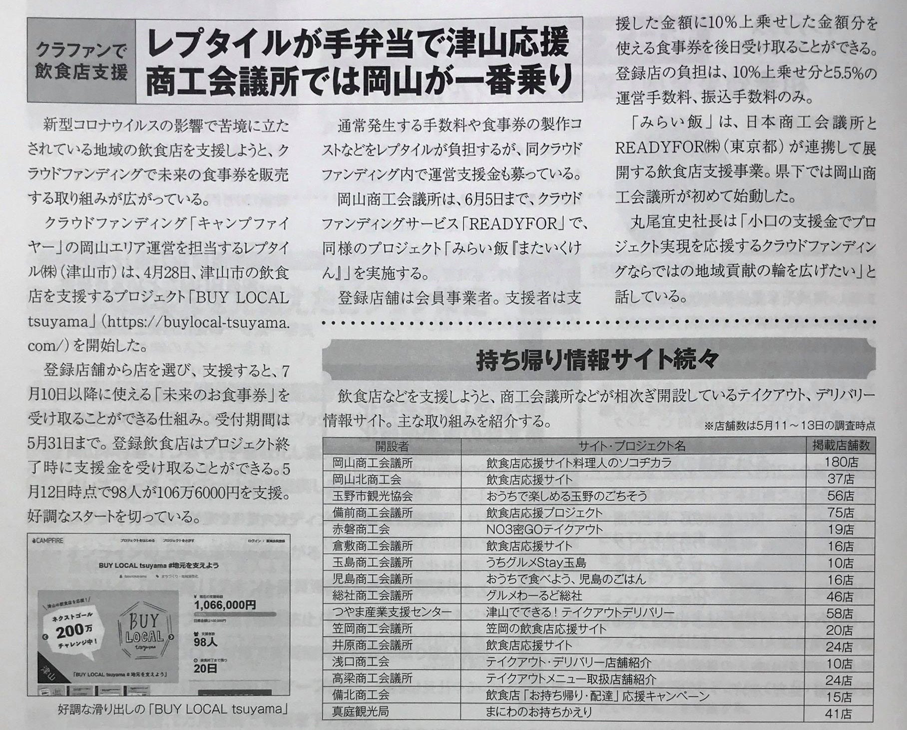 2020/05/21 14:06岡山の経済情報を盛り込んだ「VISION OKAYAMA」にBUY LOCAL tsuyama が掲載されました!取材いただきありがとうございました。本プロジェクトは5月31日までとなっております。残り11日 応援よろしくお願いいたします!BUY LOCAL tsuyama もっと見る