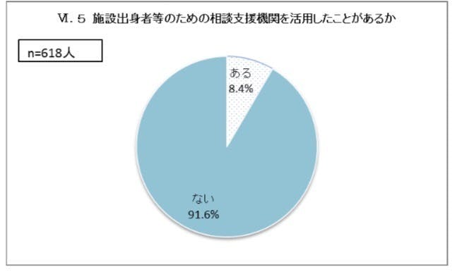 こちらは、「施設を巣立った若者のための相談機関を活用したことがあるか」というアンケートです。なんと、10人に1人くらいの割合でしか相談機関を使ったことがないという状況です。