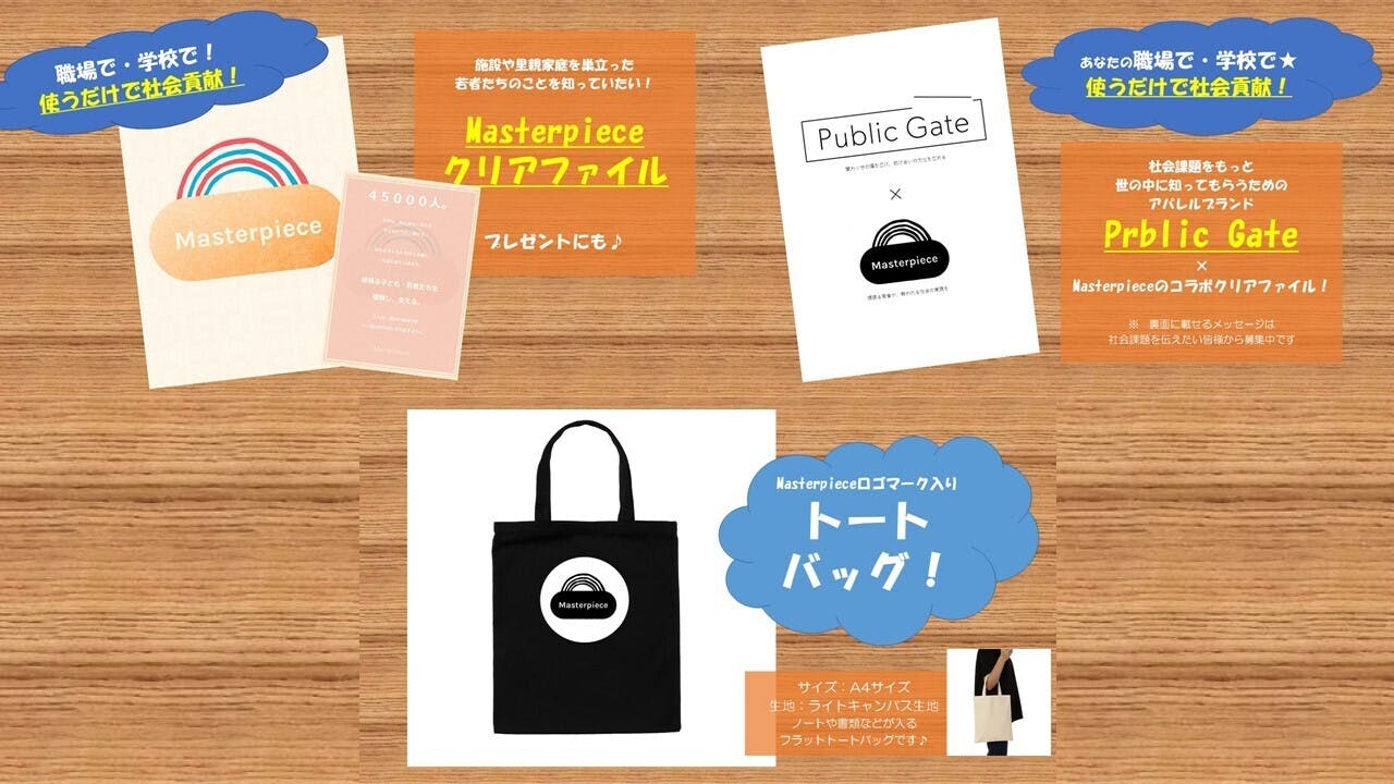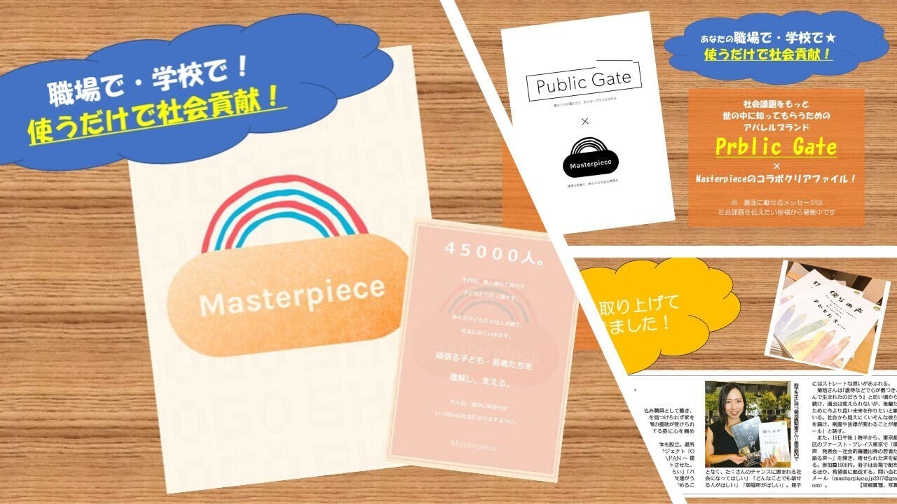 ◇ Masterpiece オリジナルクリアファイル or 社会課題を広めるアパレルブランド Public Gate とのコラボクリアファイル 1枚 ◇「僕らの声」冊子1冊 ◇ 啓発活動「OUR VOICE」ステッカー1枚お届け!