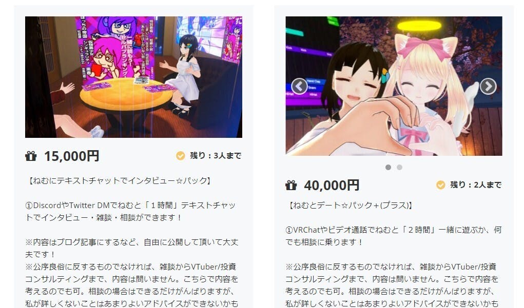 ・多数リクエストを受け【ねむとコラボ☆パック】【ねむとデート☆パック】でVirtual CastやVRChatを利用する場合、私の衣裳を支援者様が自由にお選び頂けることにしました。