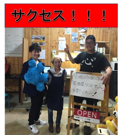 2017/06/09 21:16【速報!】サクセスのお礼とストレッチゴールについて 支援者とすべての応援してくださった皆様にうれしいご報告です。 本日午前10時ごろ、【居酒屋りばてぃ~】プロジェクトをサクセスすることができました!!!!!!!!!!!!!!!!! 皆様のおかげです、本当にありがとうございます。おじいちゃんとおばあちゃんも喜んでいます! 必ず素敵な店構えにさせていただきます。 そして、より多くの人が駆け込めて、勇気づけられるような場所にしていきます! ひとりで届けられるものは小さいかもしれませんが、ここをひとつの「コミュニティの場所」にし、心の拠り所になるような場所にしていきます。 来てくれた人が、自分の生き方について何か気づいてもらえるような、気づかせてくれる人に出会えるような、そんな場所にできたら一番だなと思っております。 そして皆様に改めてのお願いです。 ここでプロジェクト達成ではありますが、実はリバ邸茨城はまだまだ未完成の部分ばかりです。次に着手したい場所が実はあり、もし叶うならここも作り変えたいんです。 それが下記です。 【フリースペースを泊まれるように作り変えたい!!】 実は居酒屋りばてぃ~(現ひまわり食堂)の裏には25畳ほどのスペースがあります。 この場所にカーペットを敷き詰め、エアベッドなど寝具を充実させて、飲んでそのまま泊まれるようにしたいんです。なぜか。 ここ、リバ邸茨城はロードサイドに立地しており、ほとんどの方は車でお越しになります。 そのため、ドライバーの方はお酒が飲めなくなってしまうことが多いです。(田舎で居酒屋が流行らないのはそのためです。) でも、せっかく来ていただいたからには全員お酒を楽しんでもらいたい! そして思う存分語り合ってもらいたい! 一緒に飲んで、一緒に寝て、より深い交流体験をしてもらいたい! そのような想いがあります。 必要な金額はおよそ20万円ほど。 プロジェクター、スクリーンなど機材も購入したいと考えております。 目標金額から超過した分のご支援はすべてこちらにあてさせていただきます! 十分ご支援していただいた上、重ねてのお願いで大変恐縮ではございますが、 ご支援どうぞよろしくおねがいします!! ストレッチゴール用に、新たなリターンを設けさせていただきました。 より多くの人に来てもらいたいという想いがあり、そのような内容に致しました。 残り3日となっておりますが、最後まで応援よろしくお願いします! もっと見る