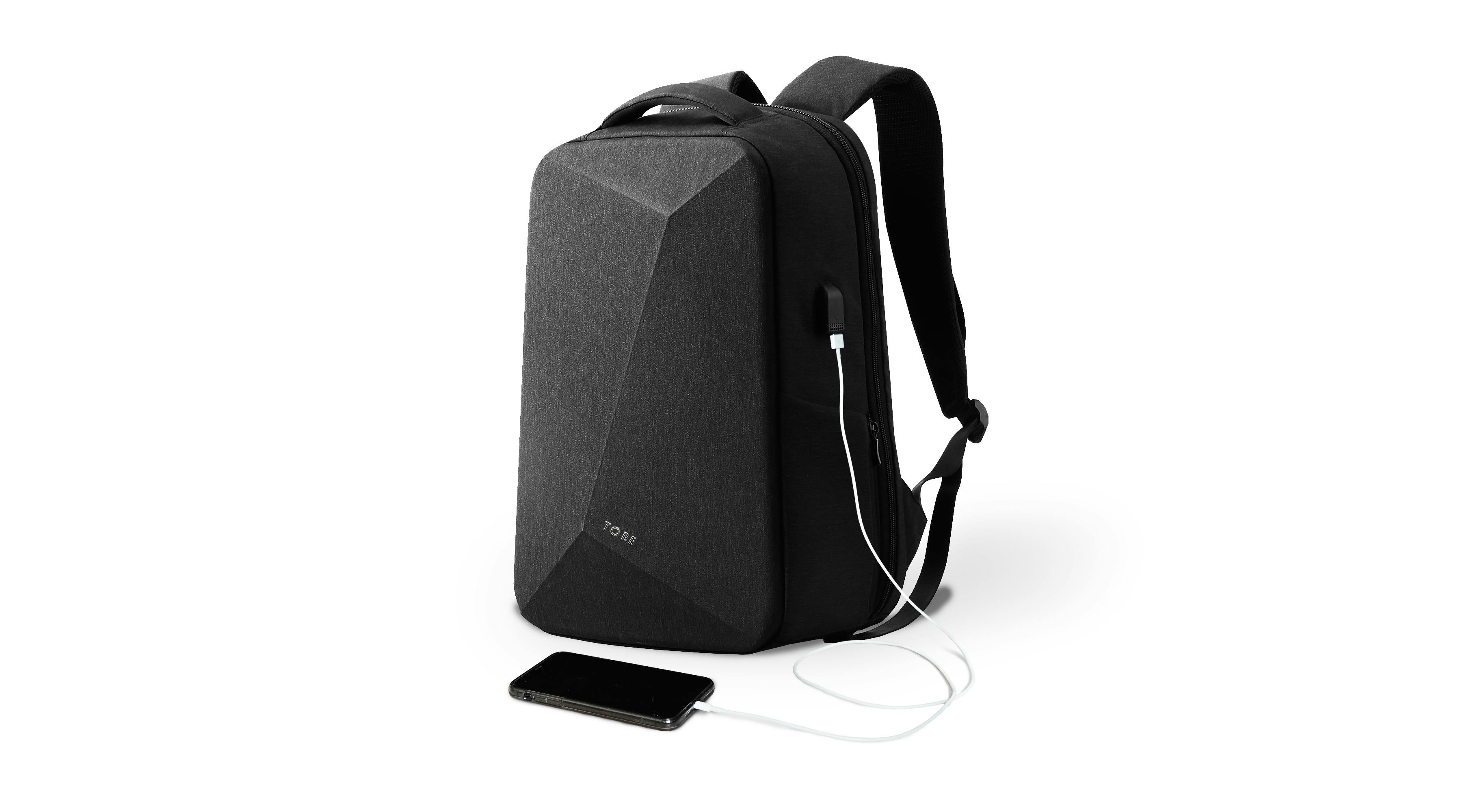 お手持ちのモバイルバッテリーをリュックの内側から接続しておくだけで、モバイル機器はいつでもどこでも、スマートフォンその他のデバイスを簡単に充電できる「TOBE万能バックパック」です。