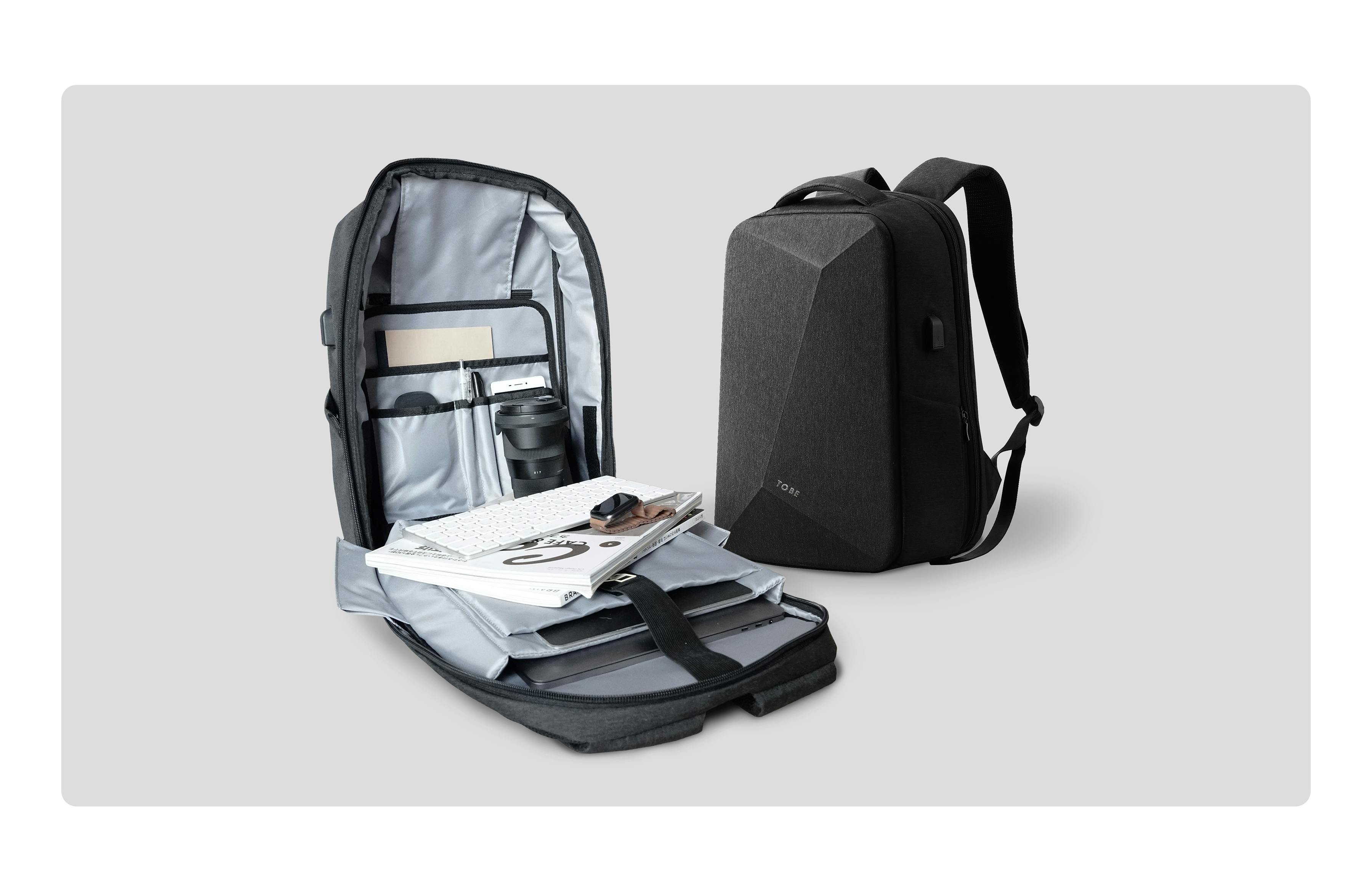 「TOBE万能バックパック」は世界に目を向けた高品質なセキュリティ機能で大切な荷物も安心です。16inch PCやタブレット端末の収納スペース、その他スマホや様々なガジェットを収納可能!取り外し可能な小分けスリーブを備え、サイドにUSB充電接続を搭載しており、いつでもどこでもスマホを触りながら充電が可能。 普段使いにも最適!スタイリッシュなデザインで、通勤や出張はもちろん旅先やアウトドア、日常のお出かけにと様々なシーンでご活用頂ける「TOBE万能バックパック」です。