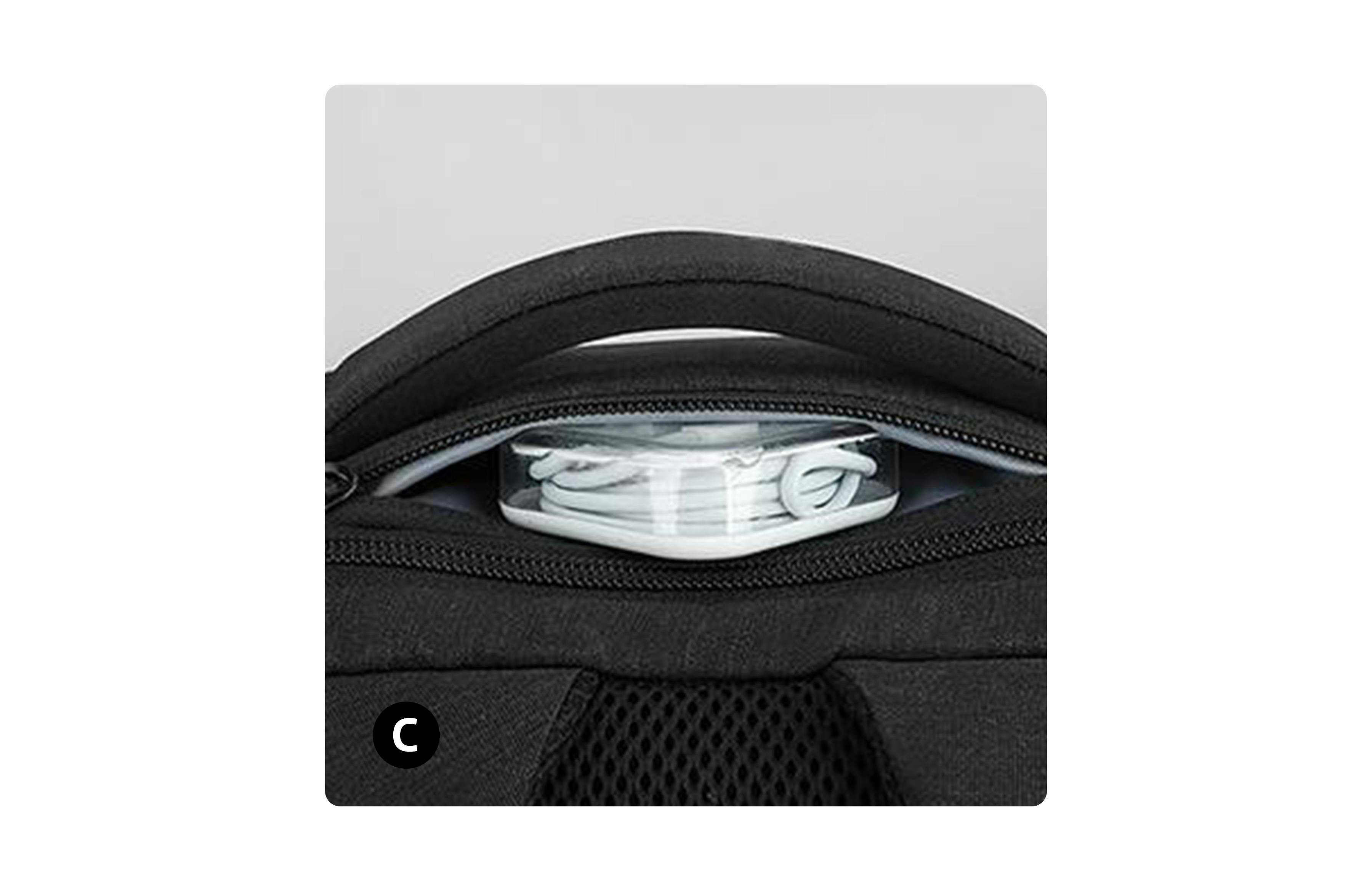 「TOBE万能バックパック」のトップアクセスポケットには鍵などの小物を収納するのに便利です。ジッパー部分は一見してそこに開口部があるとは分からないようにデザインされているので安心です。