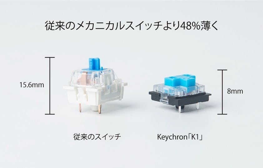 Keychronはキーボードのスイッチに注目。打鍵感を失うことなく、薄くスマートなデザインにするべく、新しいメカニカルスイッチを採用しました。