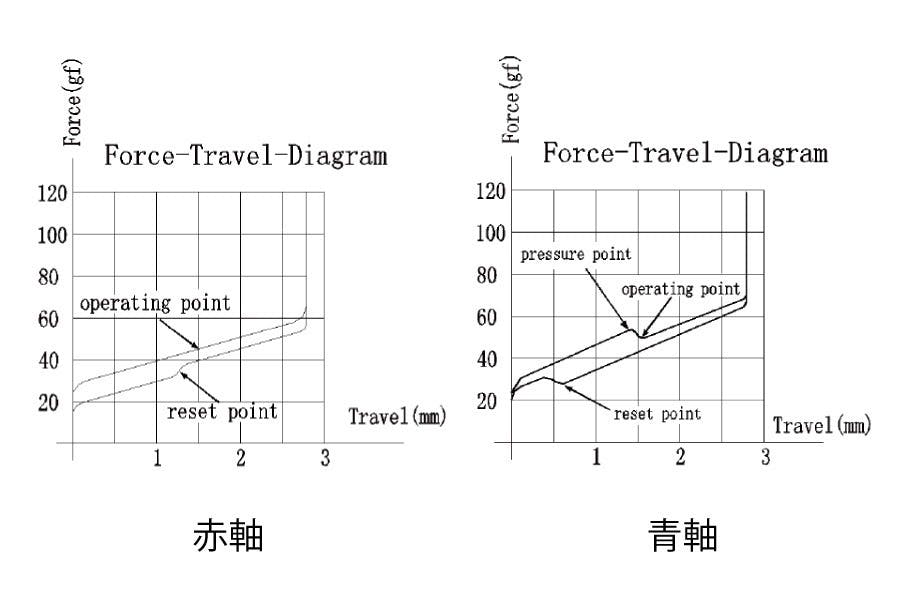 今回のクラウドファンディングでは2種類のスイッチ軸を準備しました。