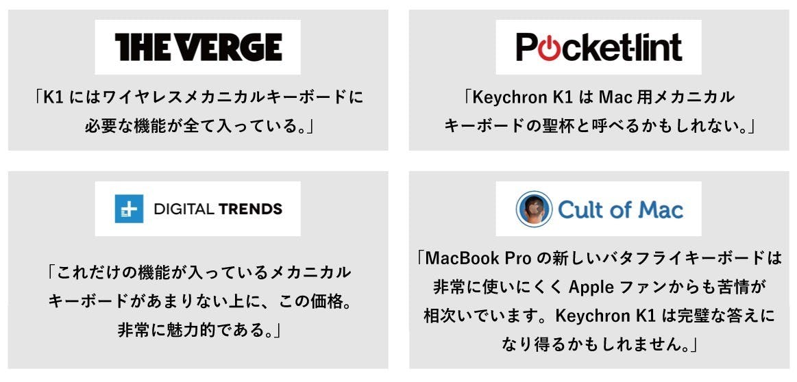 ・製品案内ページ内の動画には「Keytron」とありますが、これは「Keychron」の前のネームになります。