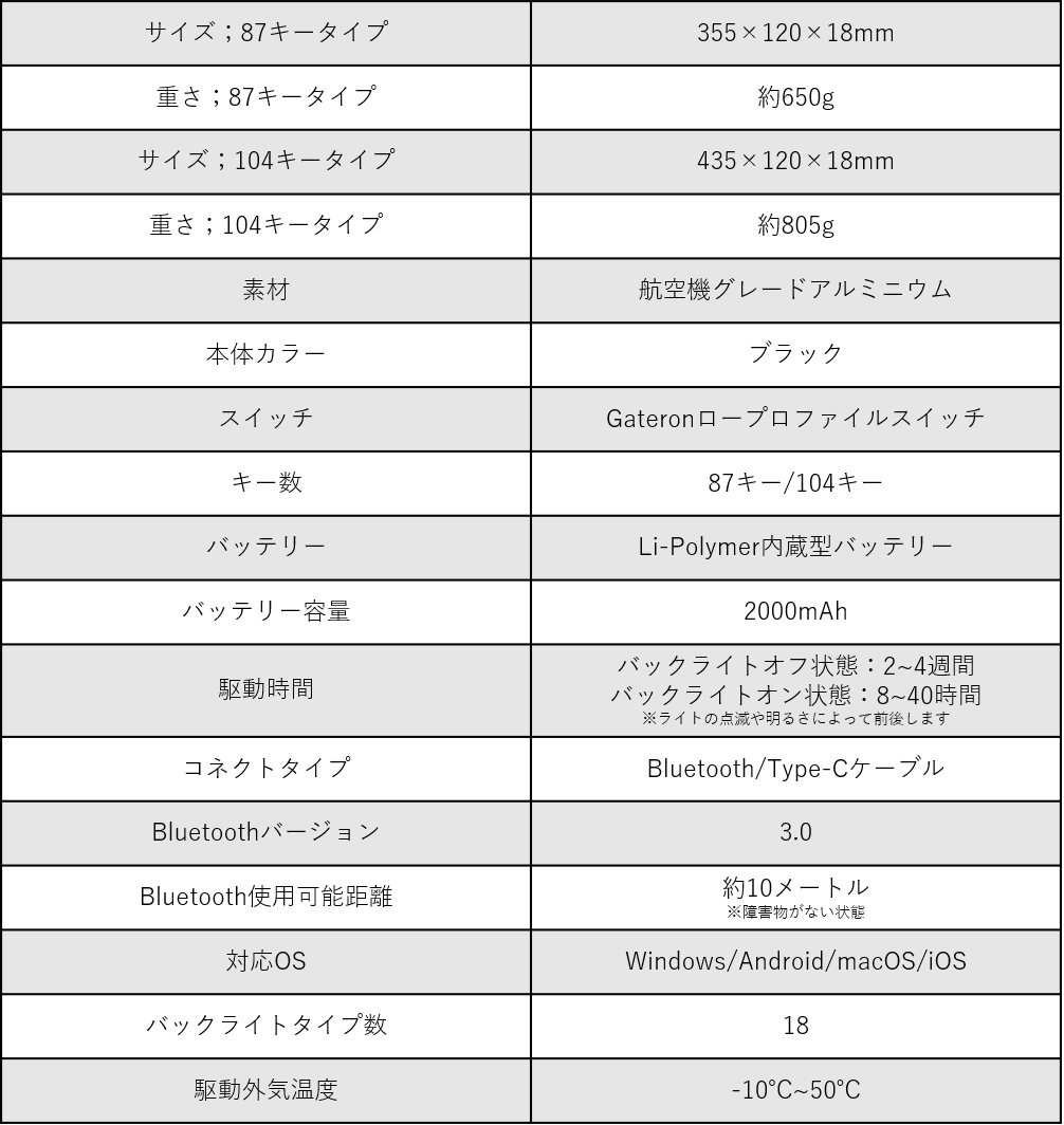※104キータイプのバックライトはRGBタイプのみとなります。