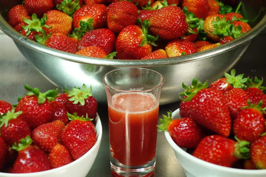 使用に際しては、しぼりたて苺ジュースと苺ジャムの二つにわけて使います。