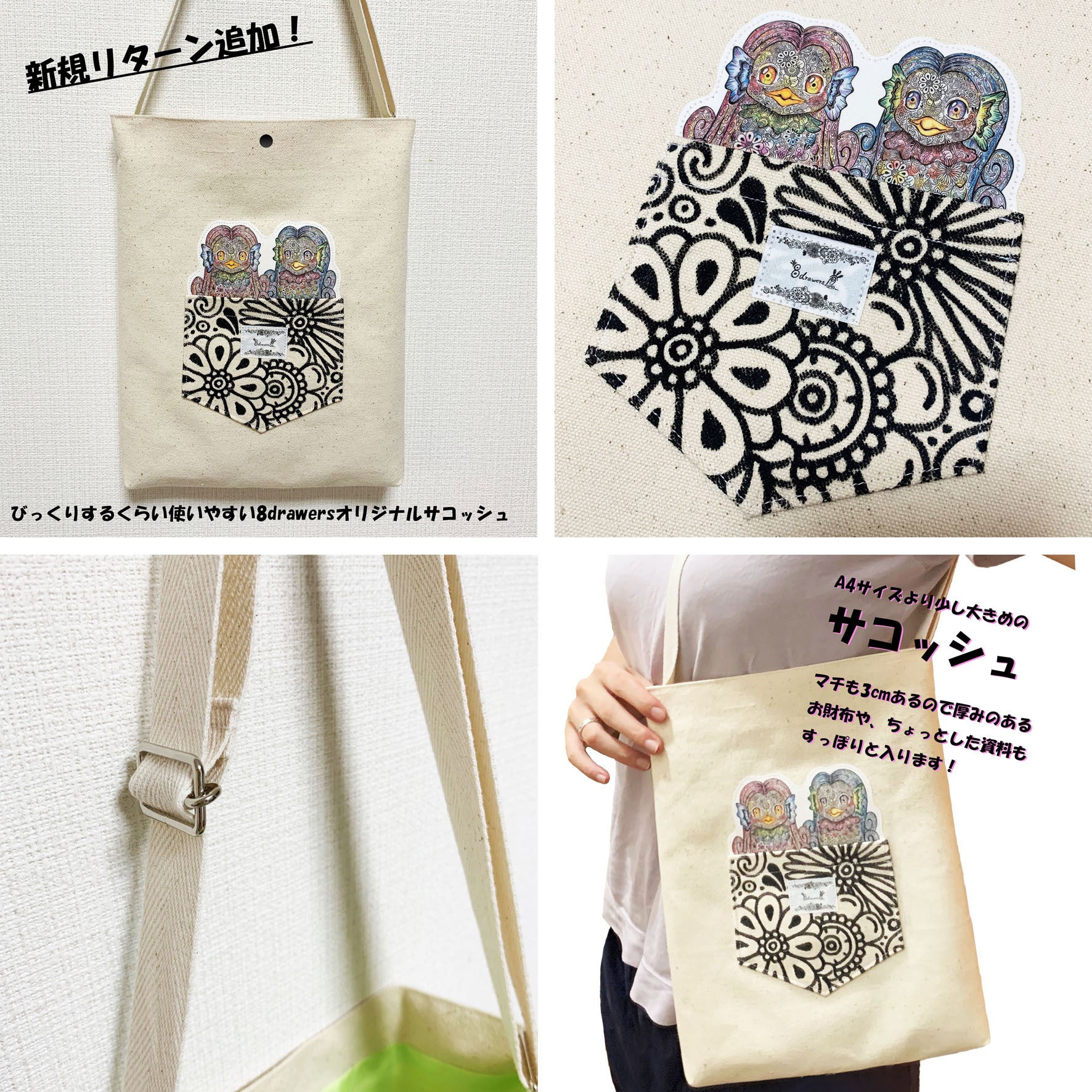 NEW→・8drawersオリジナル サコッシュ(生成り or 黒)
