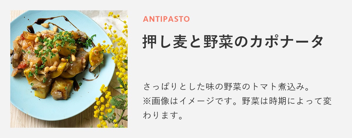その他に、ご家庭で簡単にお作りいただけるようなミールキット(生パスタとパスタソース:2人前)やその場でお作りさせていただく温菜や数種類のパスタをご用意しております。デリカテッセンの内容は日々更新していく予定です。できる限り、季節の食材を使って皆様にご提供したいと考えております。