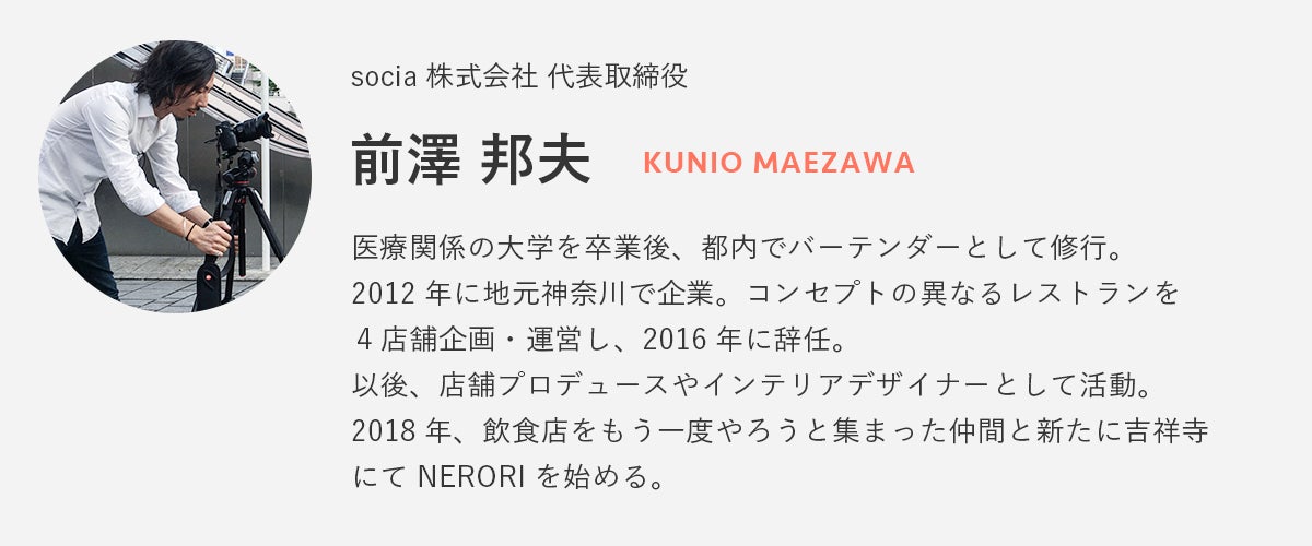 NERORIをはじめ、20店舗以上のデザイン・ブランディングを手がけてきたsocia株式会社 前澤がデザインを請け負わせていただきます。