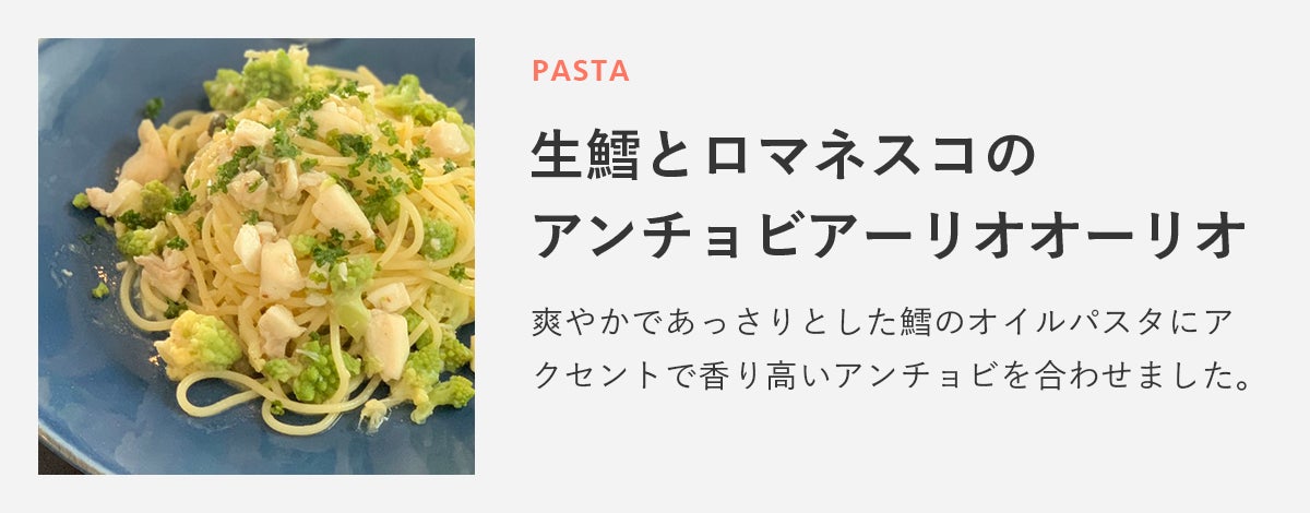 爽やかであっさりとした鱈のオイルパスタにアクセントで香り高いアンチョビを合わせました。