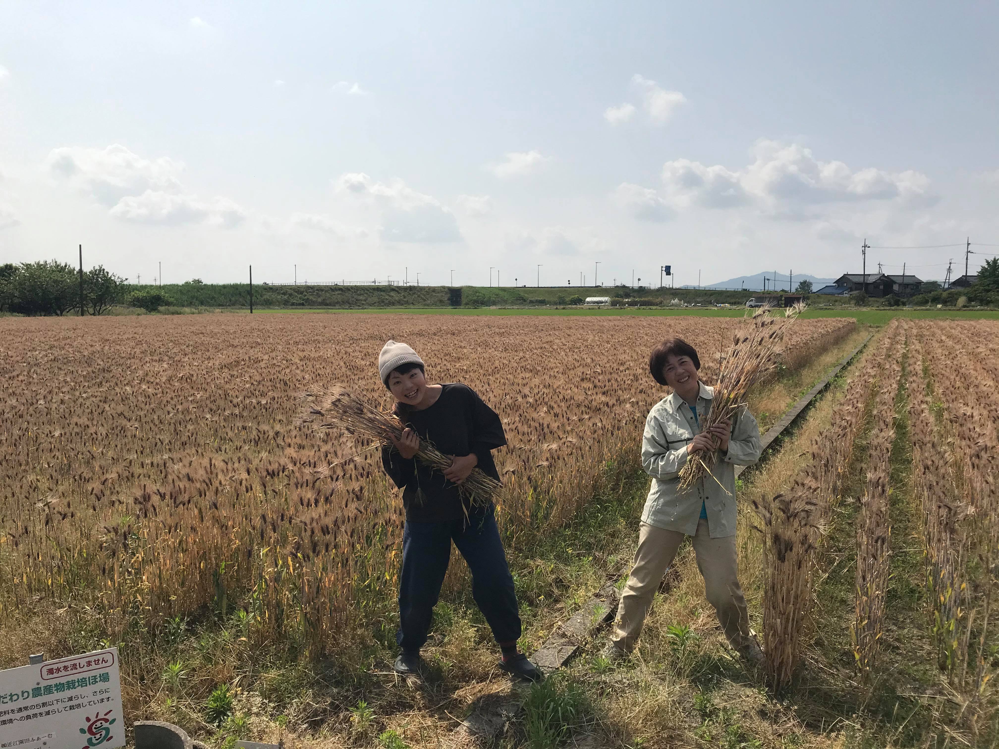琵琶湖に近いこの場所では、春になると水路に設置した魚道に鯉や鮒、鯰など琵琶湖から上ってきます。魚は産卵し水田の中で稚魚は大きくなります。そこで作られるお米を魚のゆりかご水田米といいます。私は3年前からお米作りや野菜作りをお手伝いさせてもらいながら、共同で無農薬六条大麦(シュンライ)の栽培に取り組んでいます。農業の大切さ、楽しさ、大変さを地域の方に教えて頂きながら、大麦も毎年少しづつですが栽培面積を増やしていく予定です。