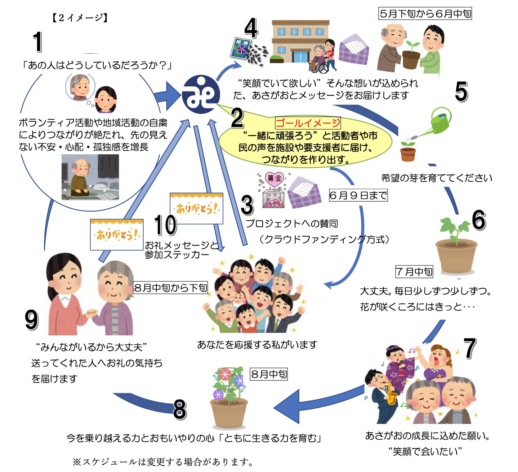 鮮やかなあさがおを夏に咲かせるために、あさがおで笑顔を咲かせるためにご支援ください。