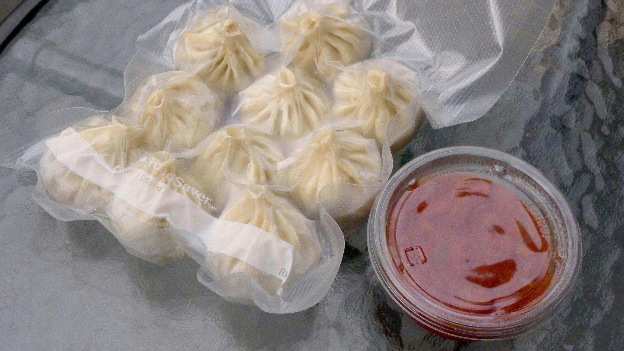 御礼メールと、チベット人のソウルフード・モモ(チベット餃子)10個入り(冷凍)を2つお送りします。(肉 or 野菜を選べます)※チリソースつき