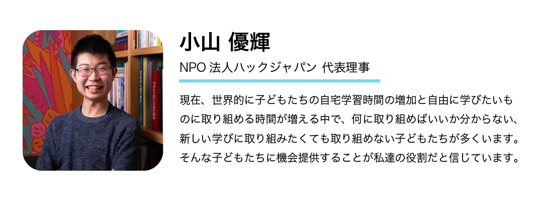 このプロジェクトを実現させることで、これからの未来、アフターコロナの時代を生き抜く小学生の子どもたちのために、今をチャンスに変えて、外に出れず家で宿題やゲームをやる日々に、なにか新しいことにチャレンジする機会を届けていきたいと考えています。是非とも、ご支援よろしくお願い致します。