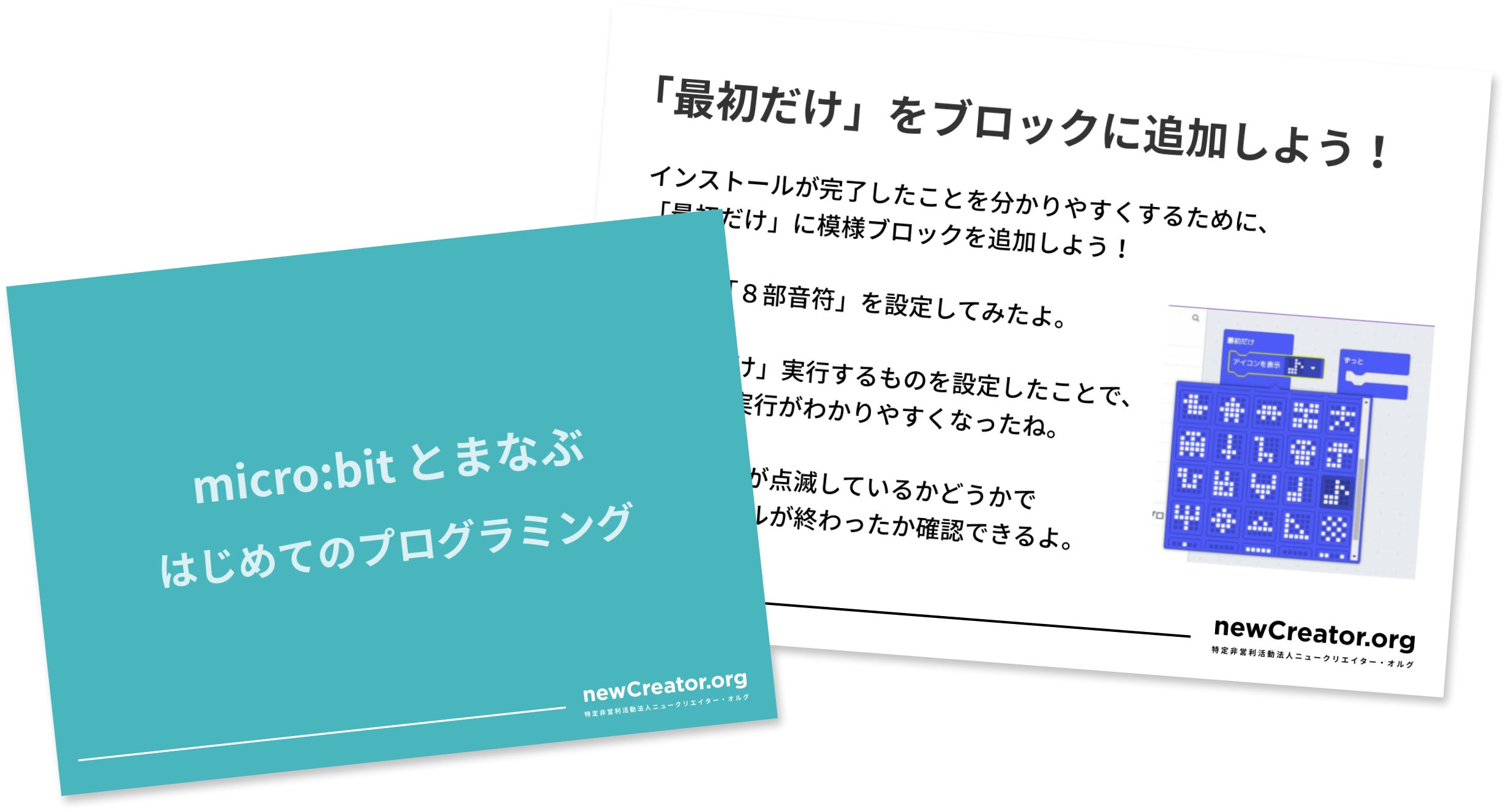 ニュークリエイター・オルグからはプログラミングをやったことのない子どもでも簡単に始められるような初心者向けのプログラミング教材を提供します。
